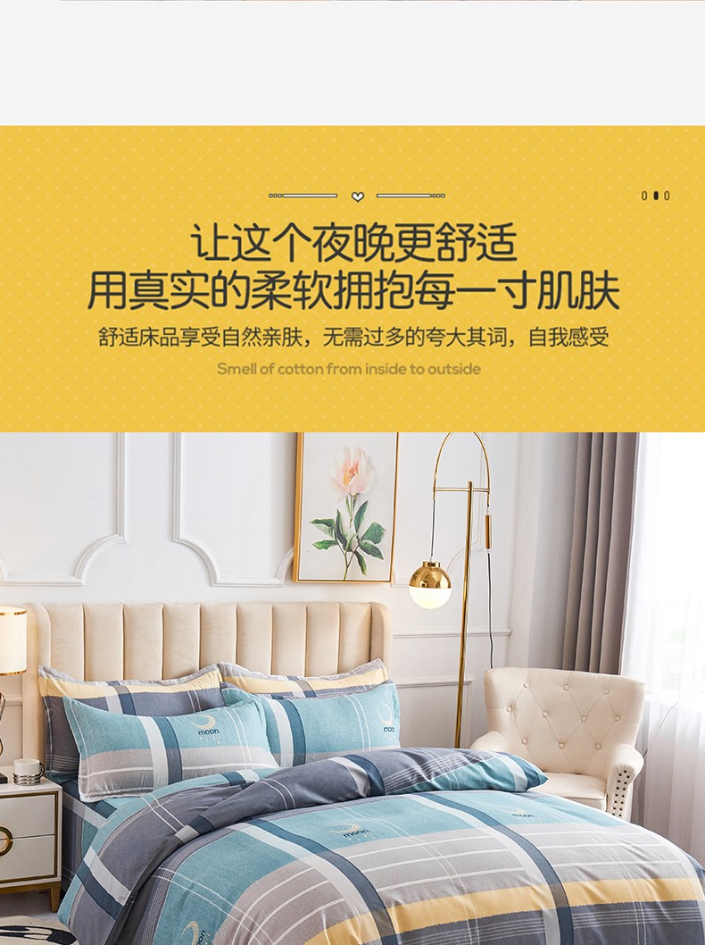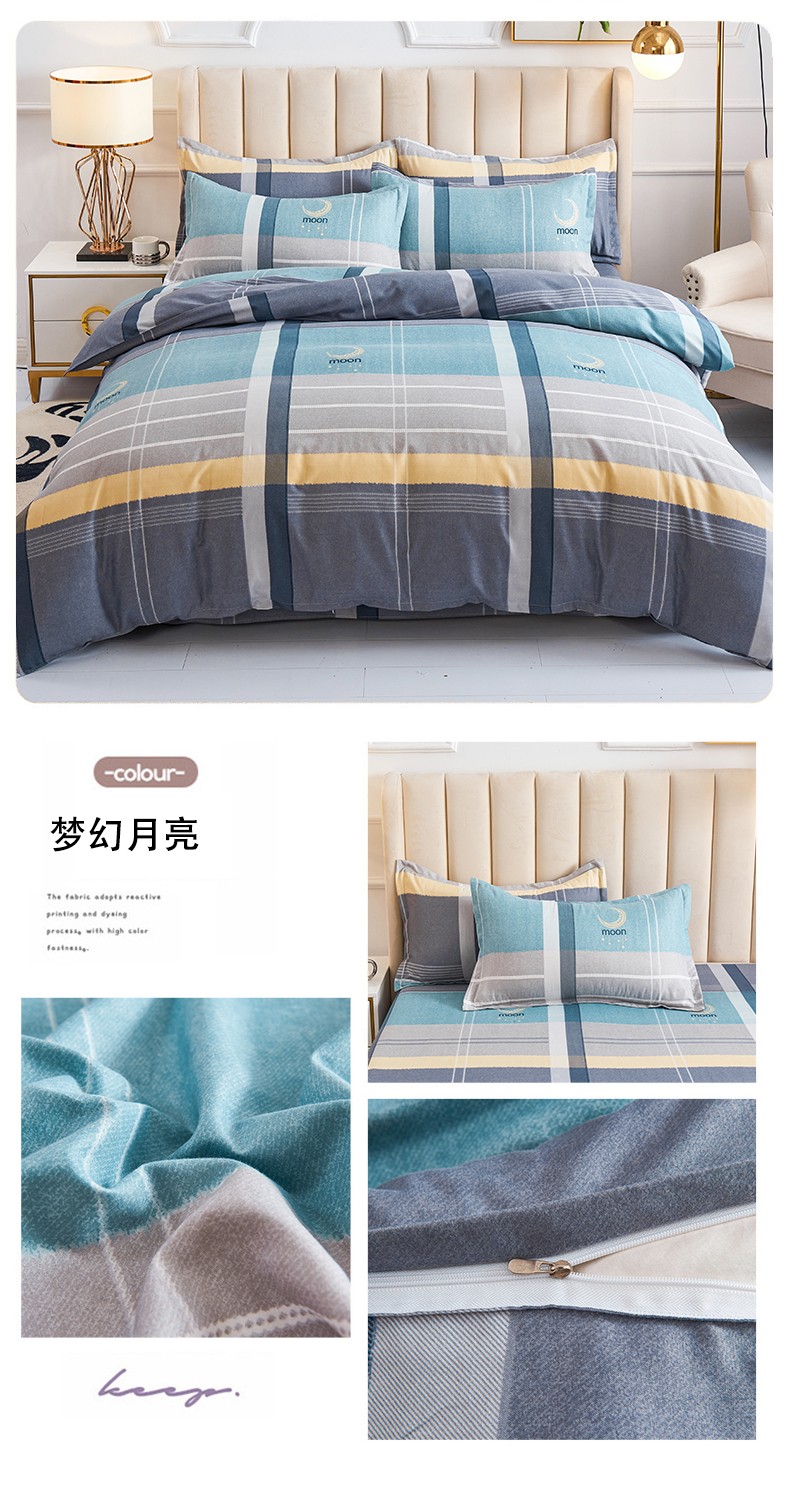 商品名称:鑫缘2025新款印花植物羊绒加厚磨毛四件套1.2米学生三件套 梦幻月亮