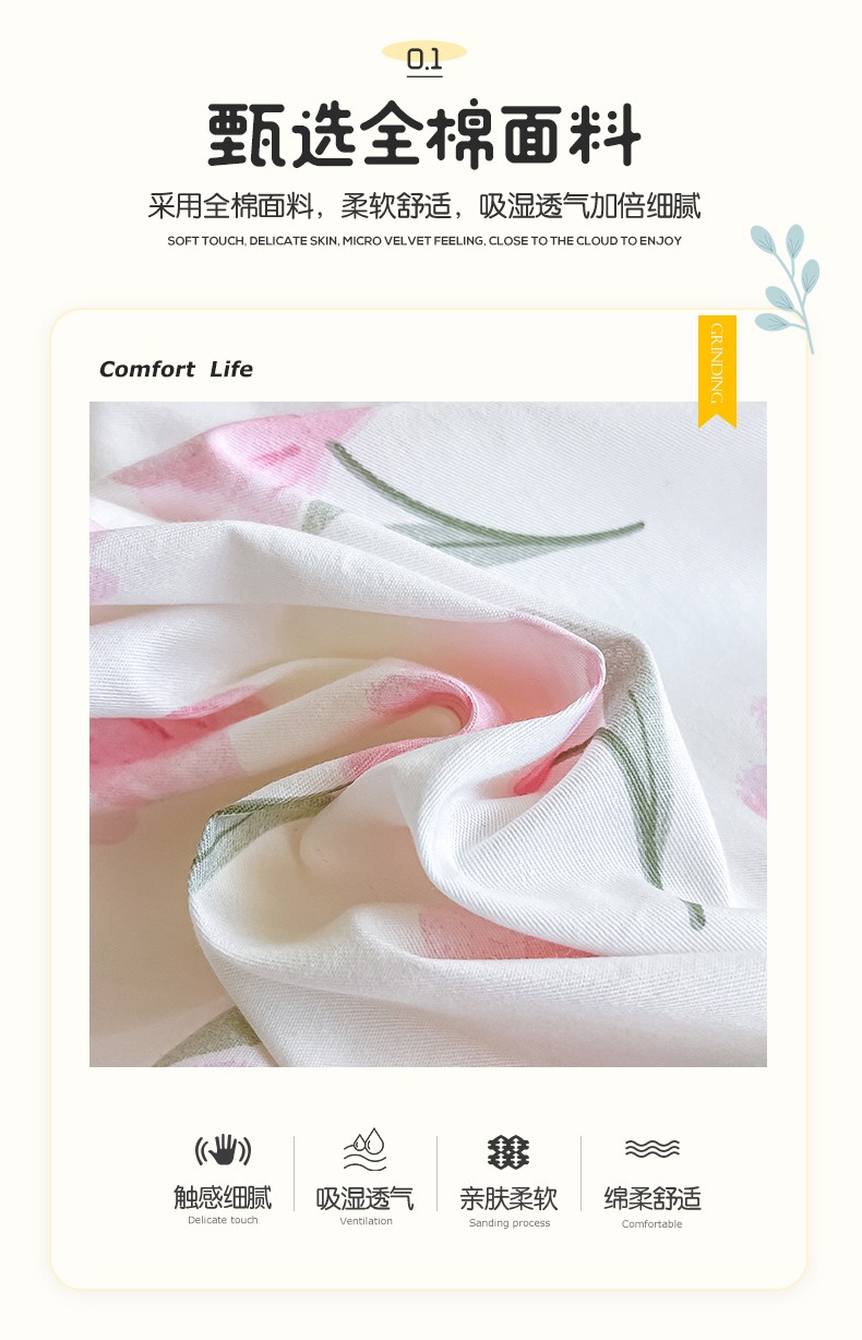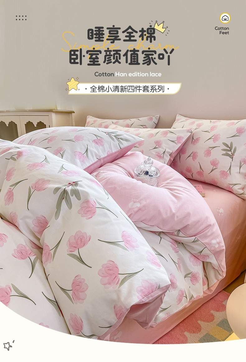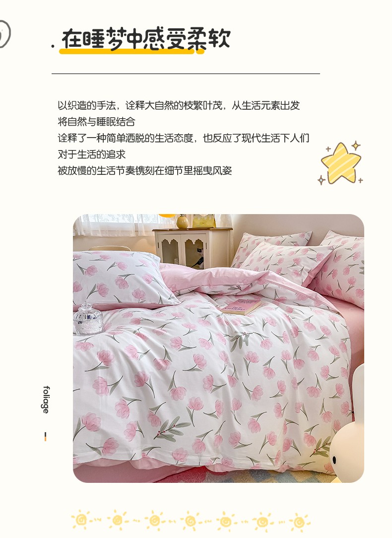 商品名称:小懒猪 2023新款春夏全棉小清新系列四件套 花意浓