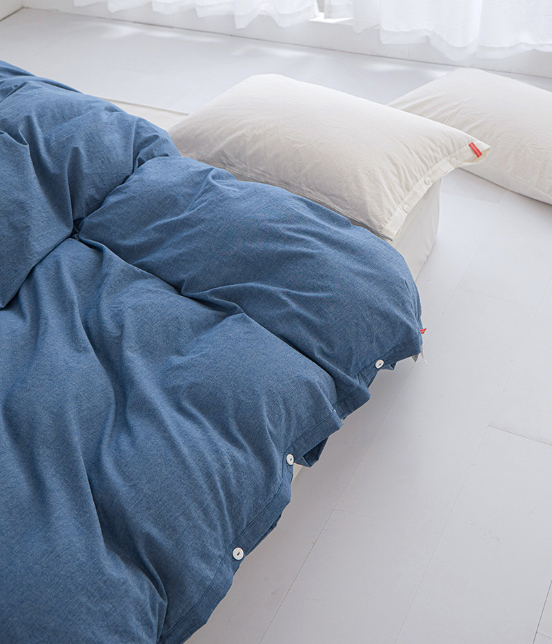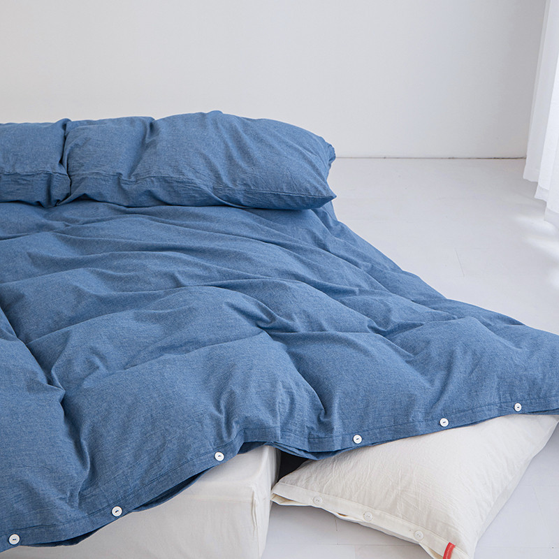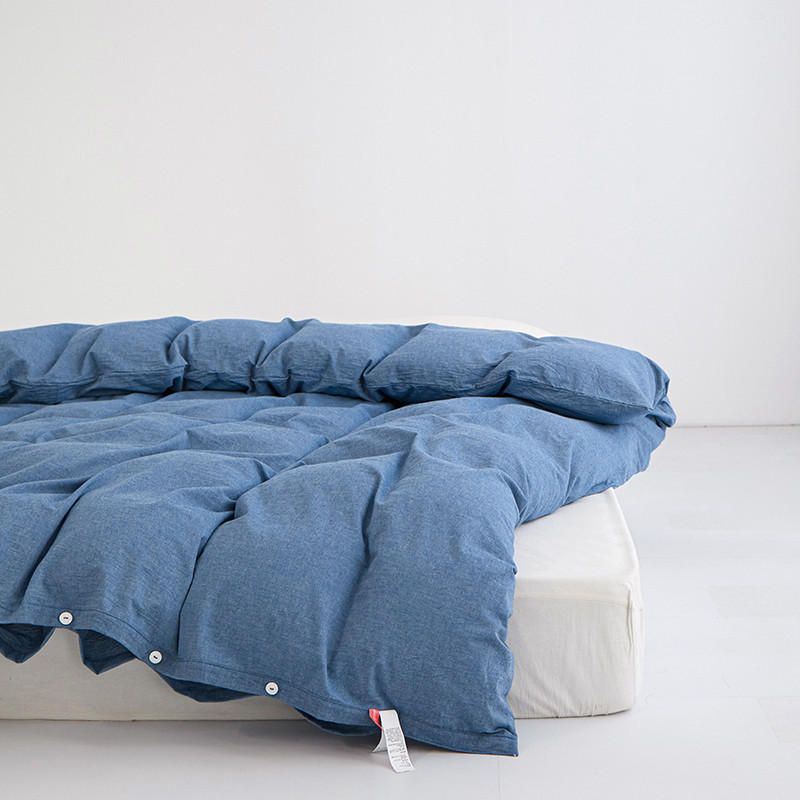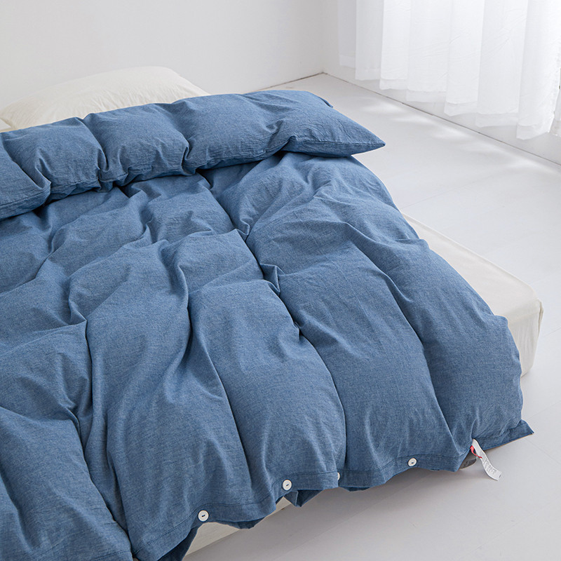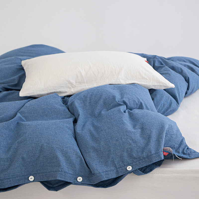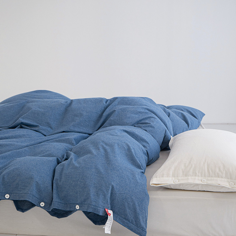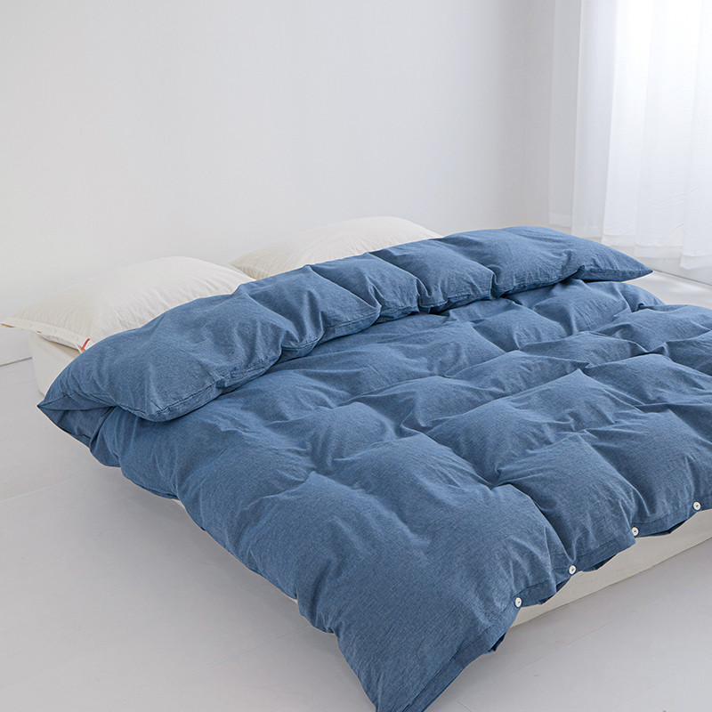 商品名称:安莱生活 2023新款水洗棉全棉色织高支高密纽扣款工艺单品被套 深蓝