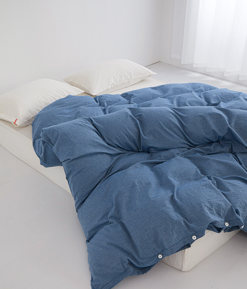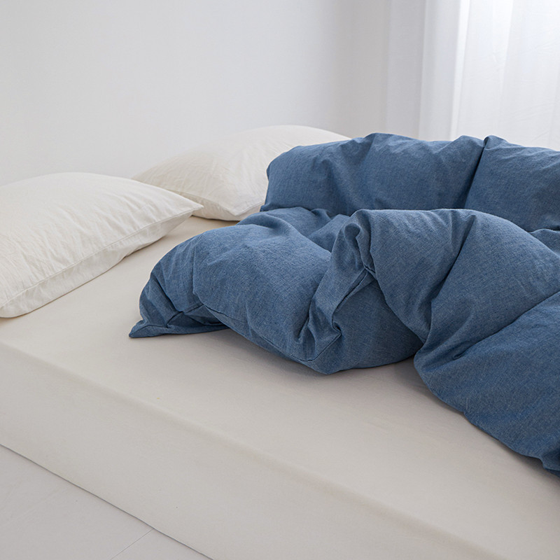 安莱生活 2023新款水洗棉全棉色织高支高密纽扣款工艺单品被套 深蓝