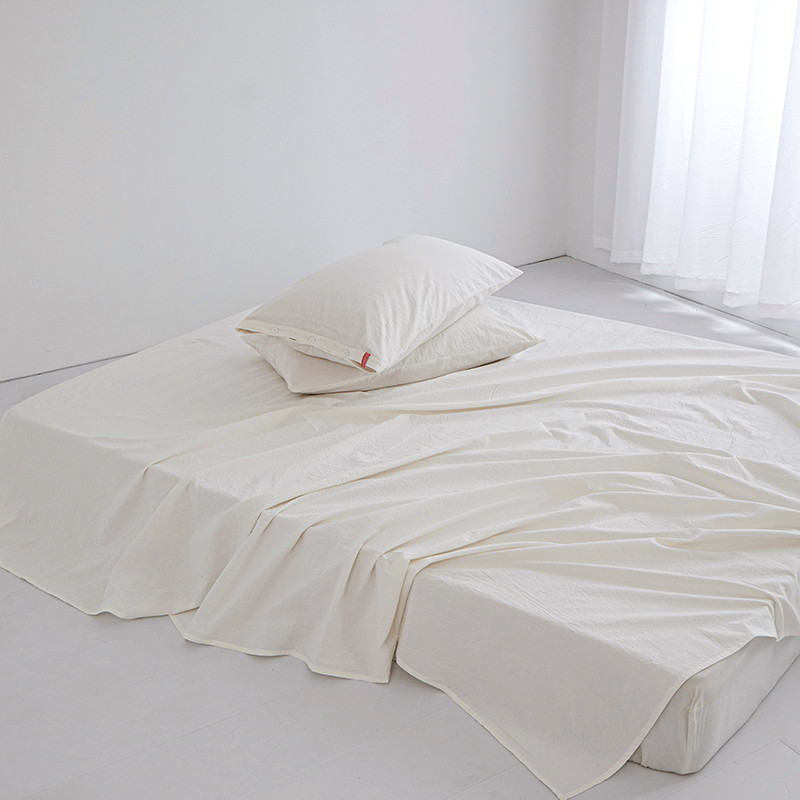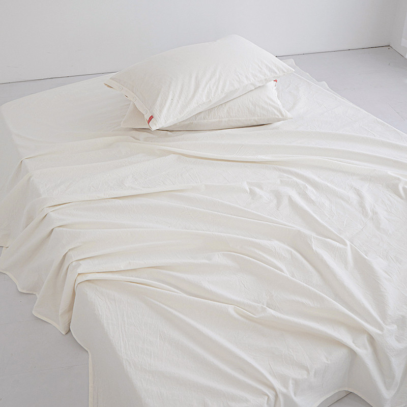 安莱生活 2023新款水洗棉全棉色织高支高密纽扣款工艺单品床单 纯白