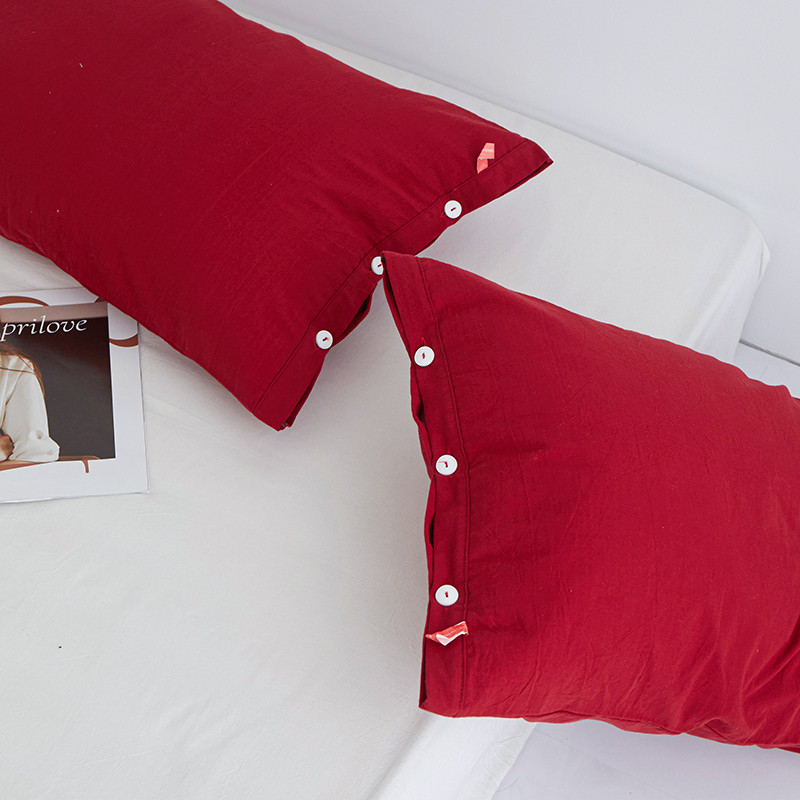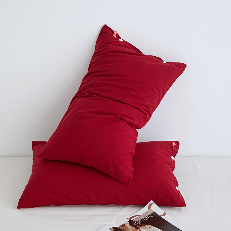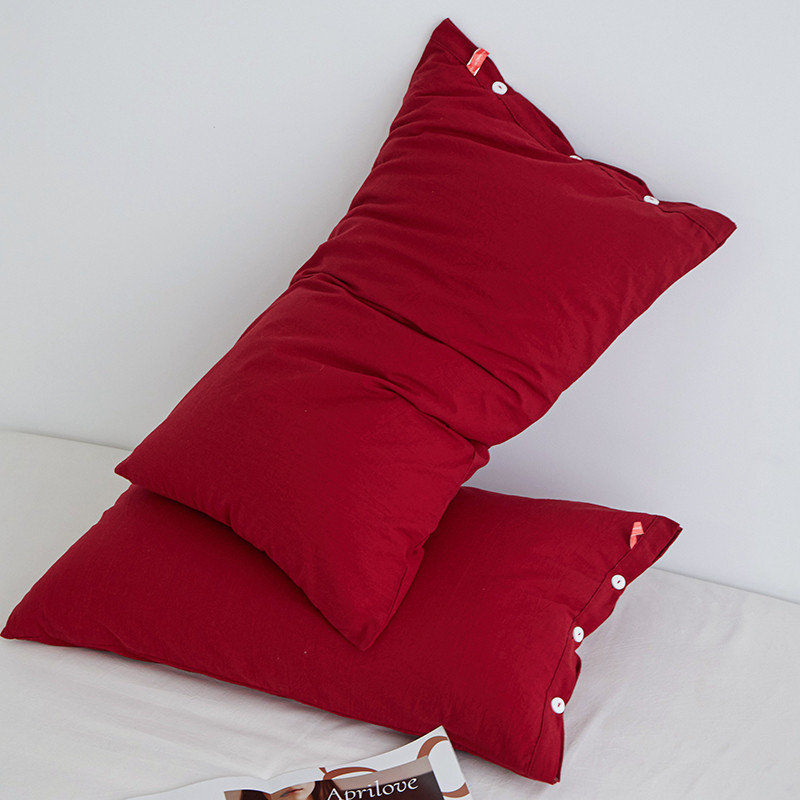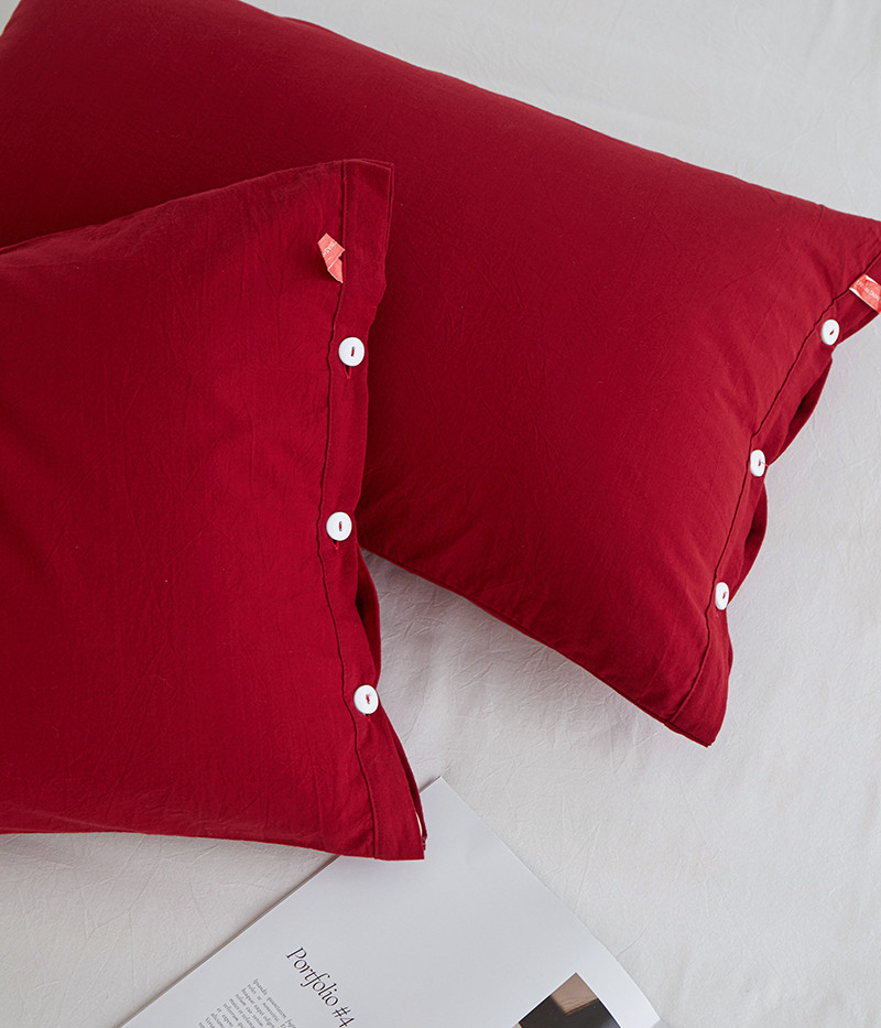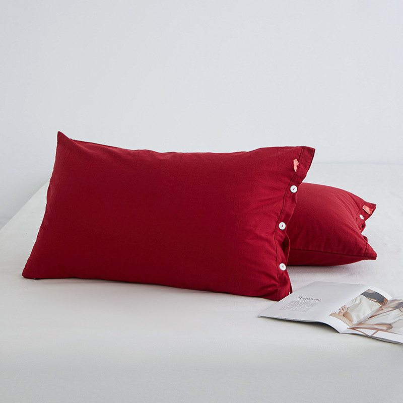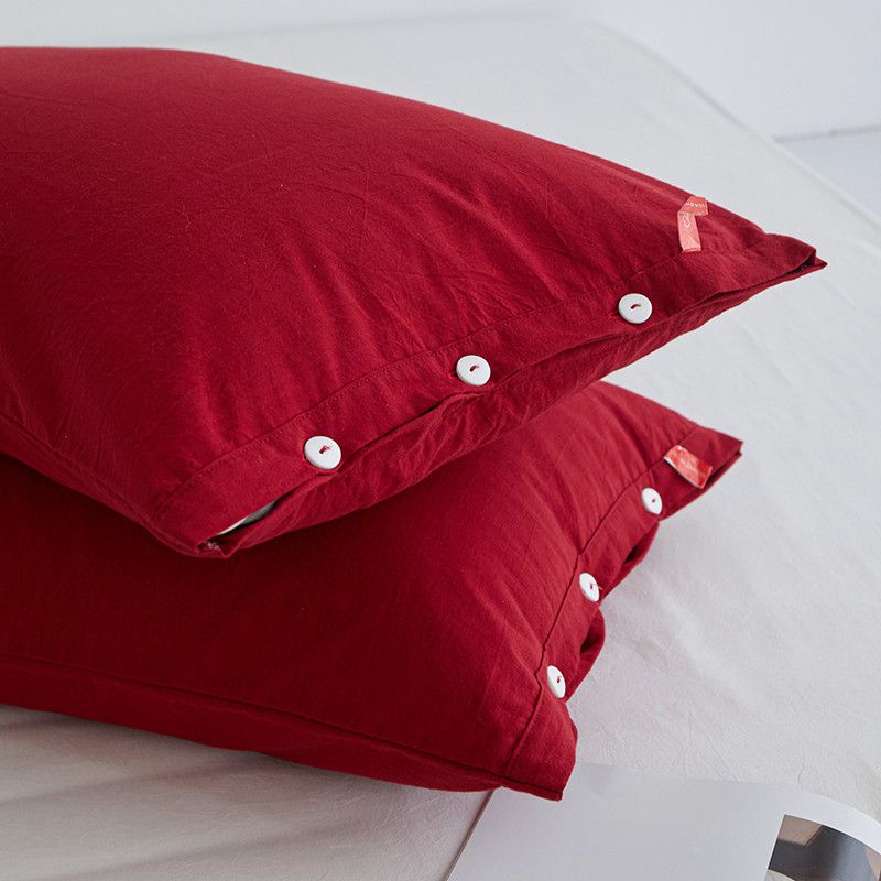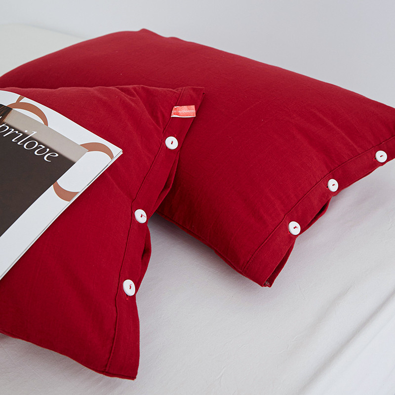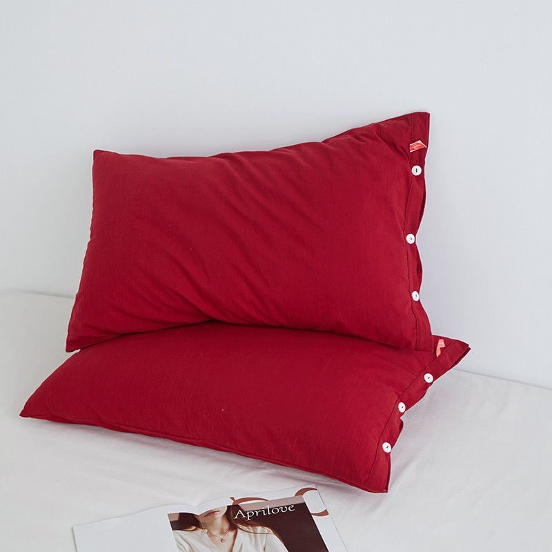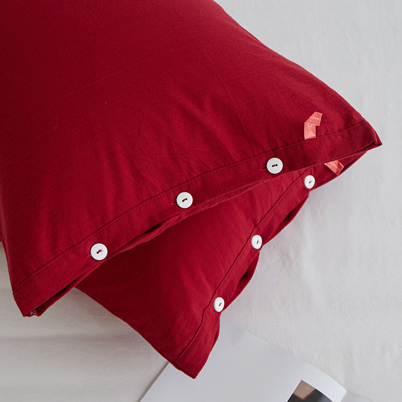商品名称:安莱生活 2023新款水洗棉全棉色织高支高密纽扣款工艺单品枕套 大红