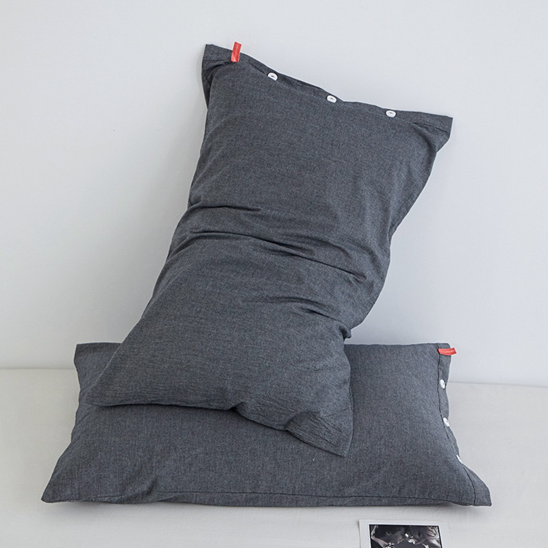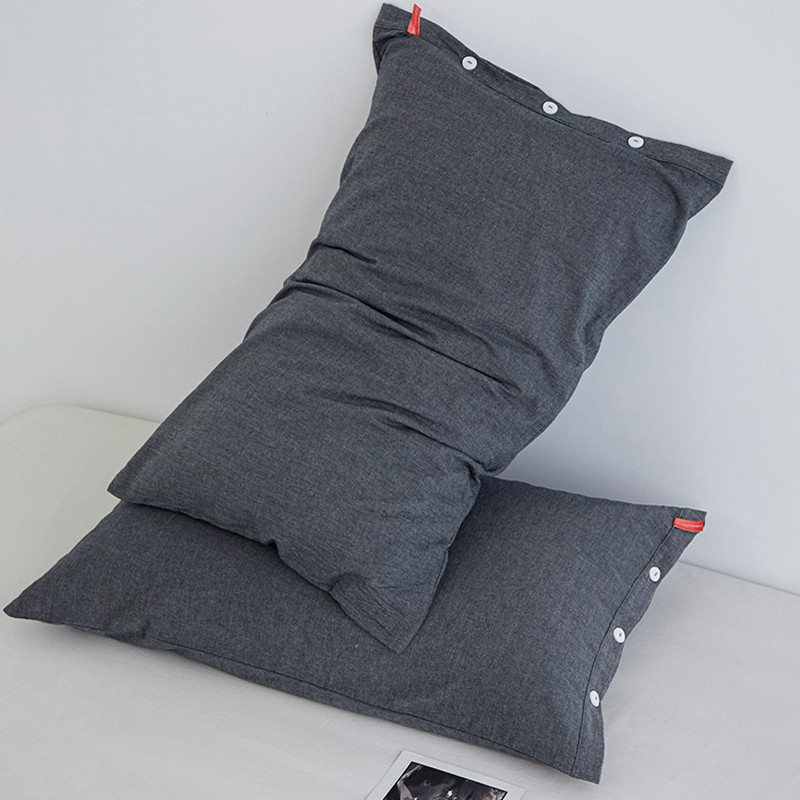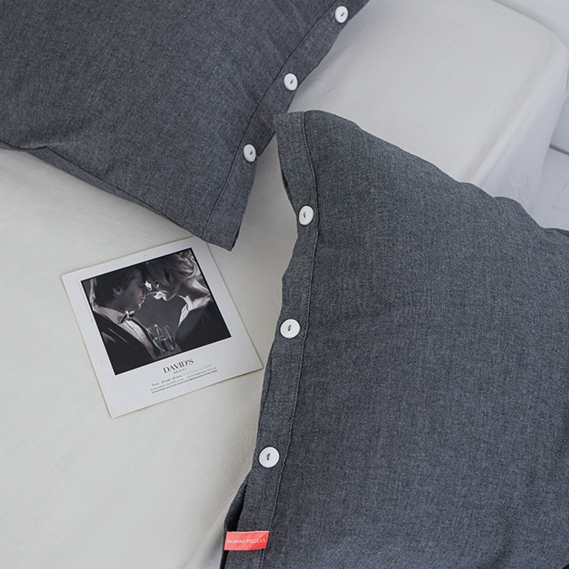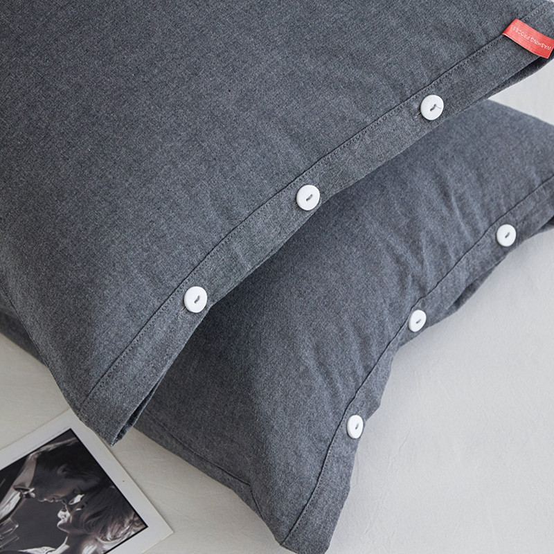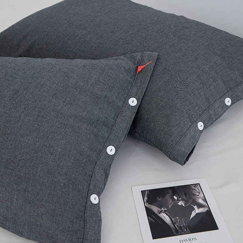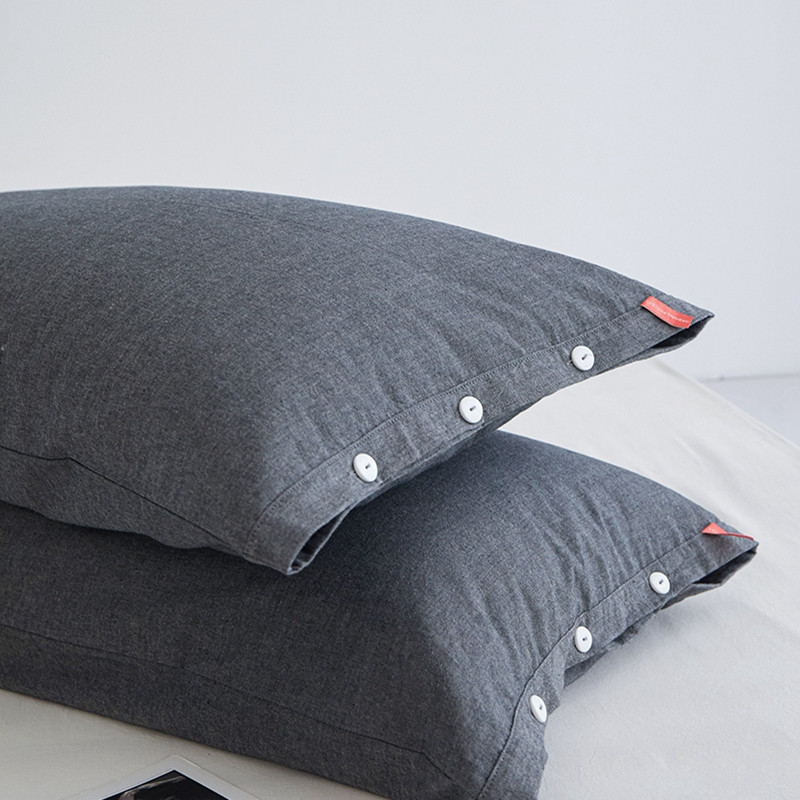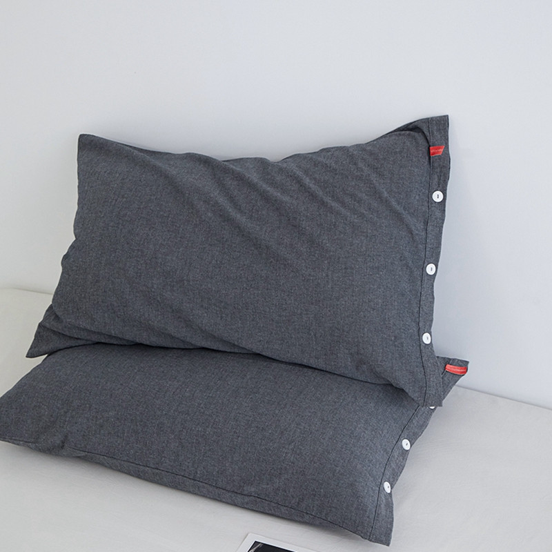 安莱生活 2023新款水洗棉全棉色织高支高密纽扣款工艺单品枕套 深灰