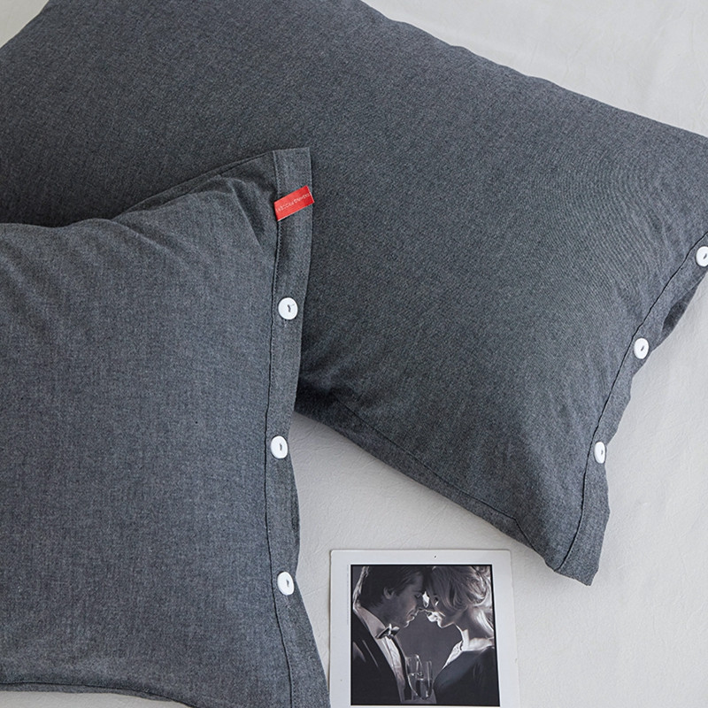商品名称:安莱生活 2023新款水洗棉全棉色织高支高密纽扣款工艺单品枕套 深灰