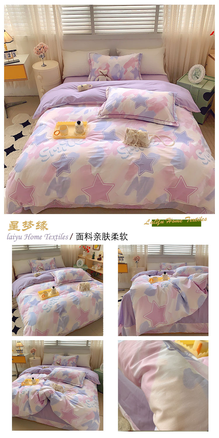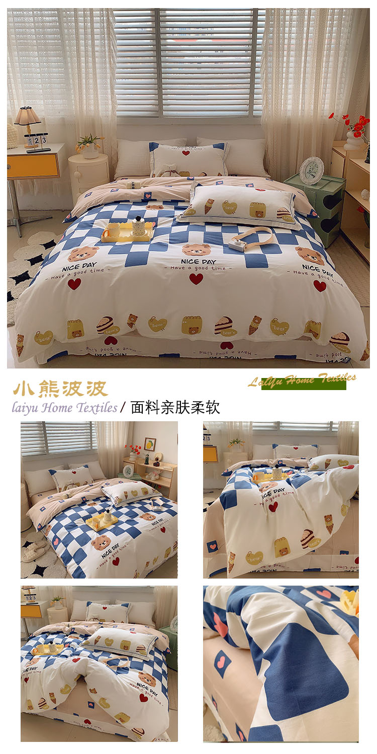 (总)莱豫家纺 2025新款小清新全棉纯棉四件套,爱心豹纹,白薇,春黛,芳华,锦绣咖,锦绣米,可爱狗狗咖,太空超人,甜橘,童年,仙本娜,小飞马,小小花园,星星人黄,星星人蓝,雅蔓