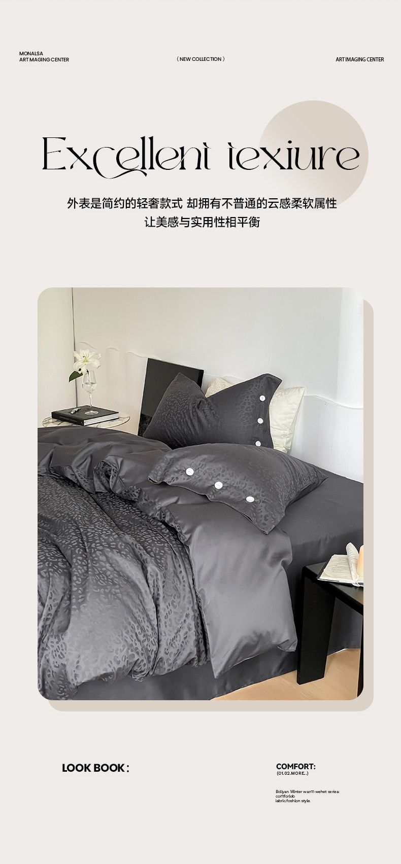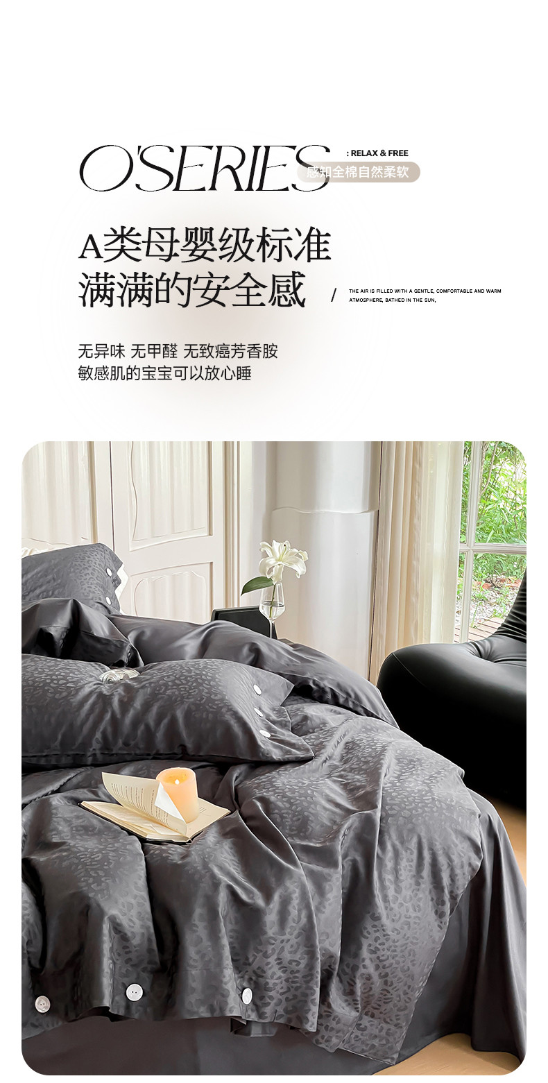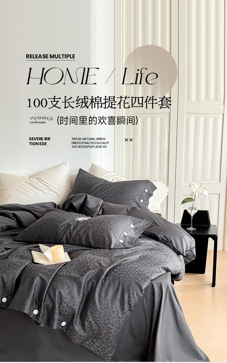 当前位置: 91家纺网 > 商品网购 > 床品套件 > 四件套 > 长绒棉四件套 > 华超针织 2023新款觅豹系列100支长绒棉提花四件套 觅豹灰