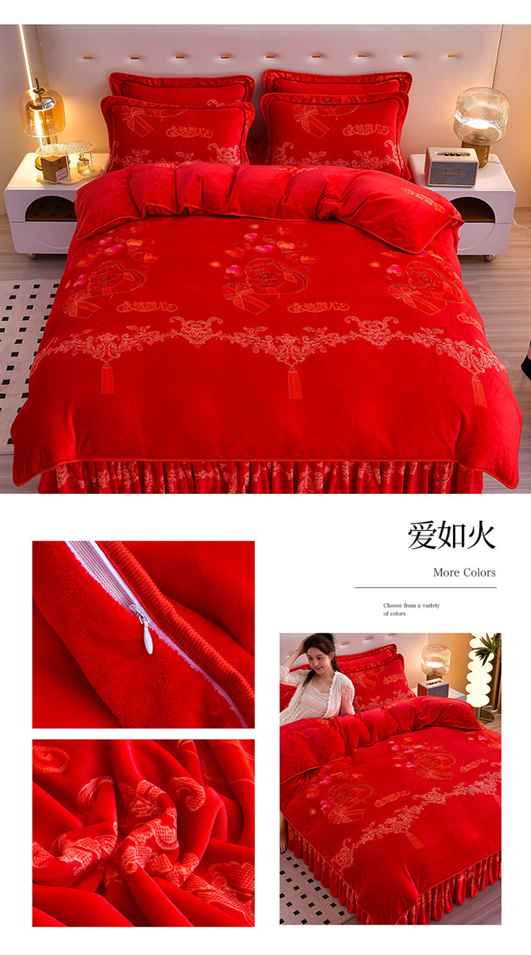 商品名称:贝诗梦 2022新款加厚230克9斤牛奶绒金貂绒四件套爱如火