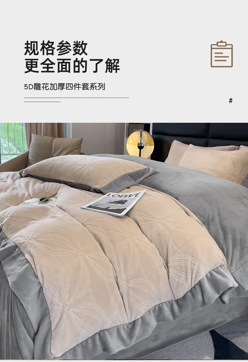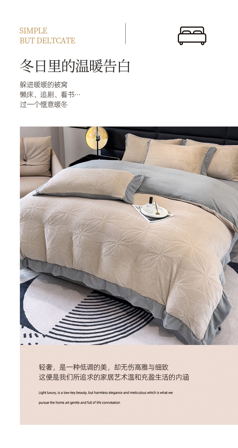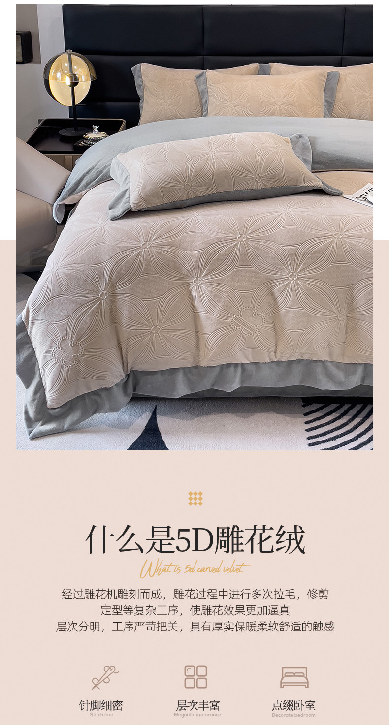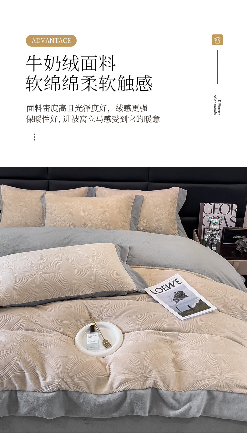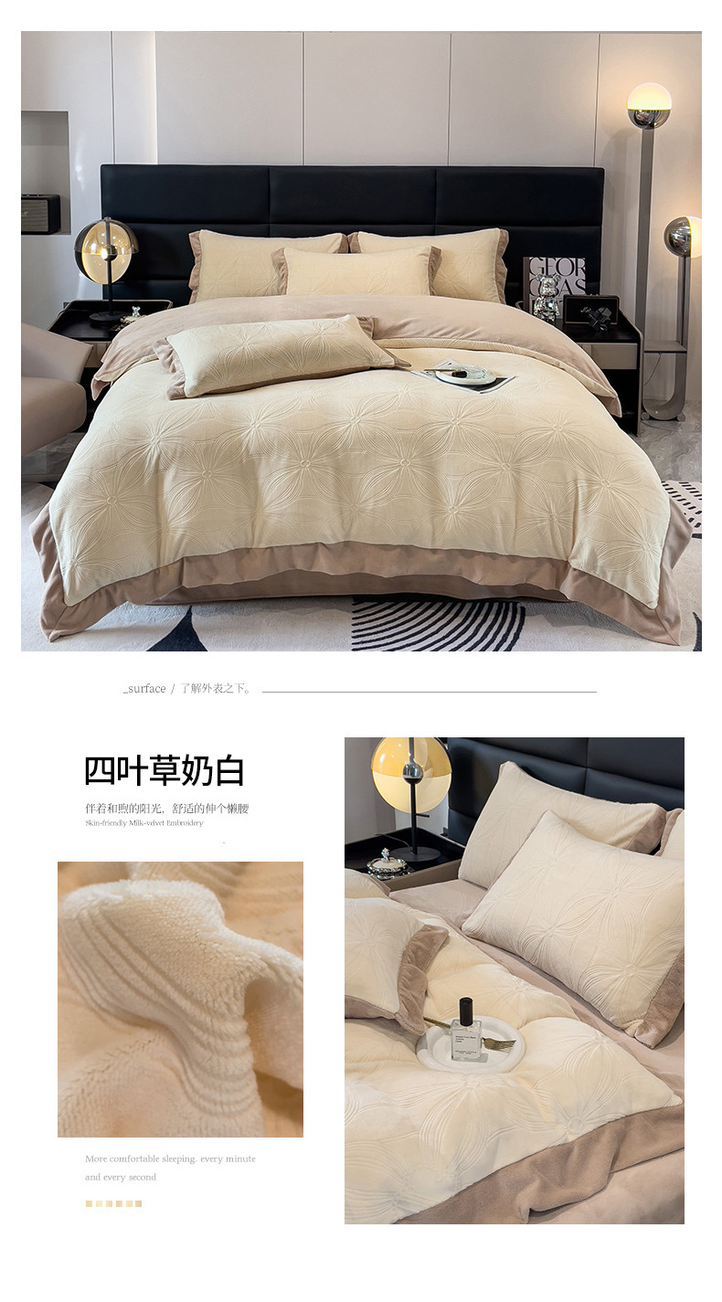 商品名称:KA 2023冬季宽边雕花牛奶绒四件套 四叶草卡其