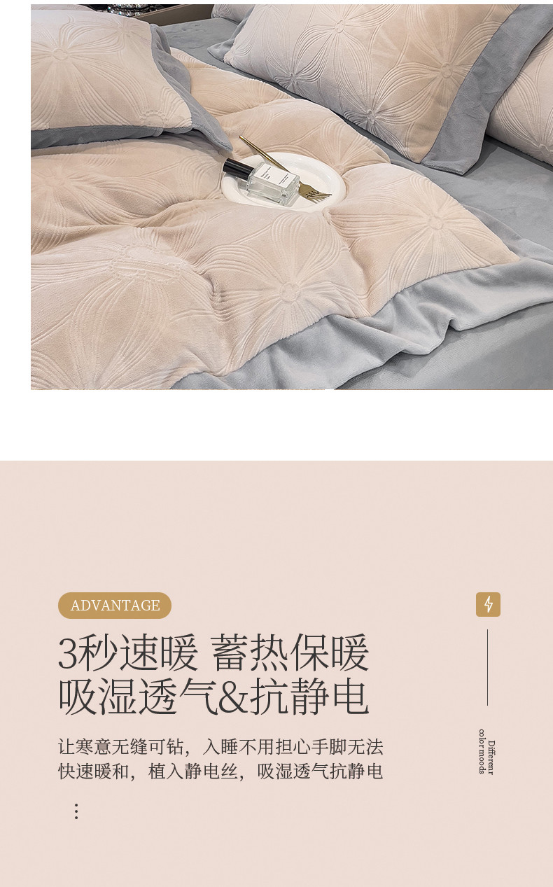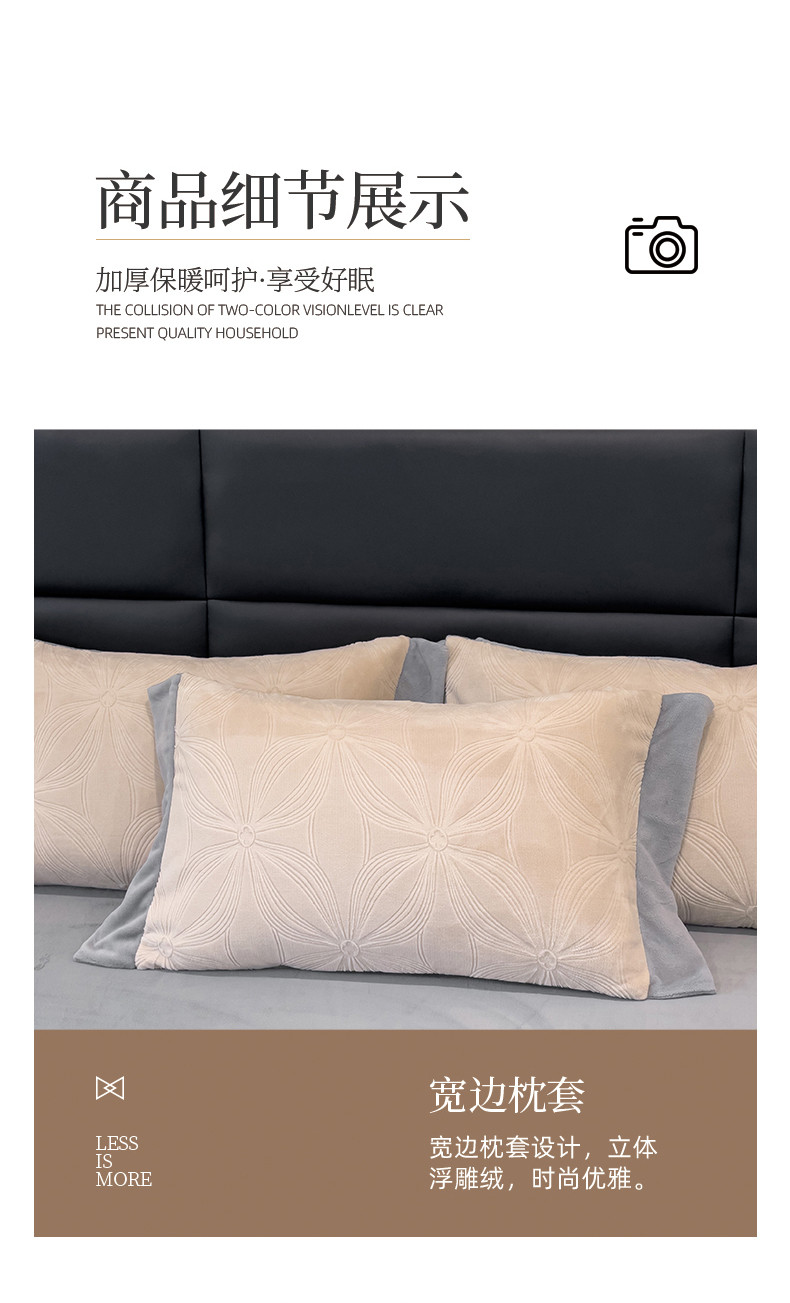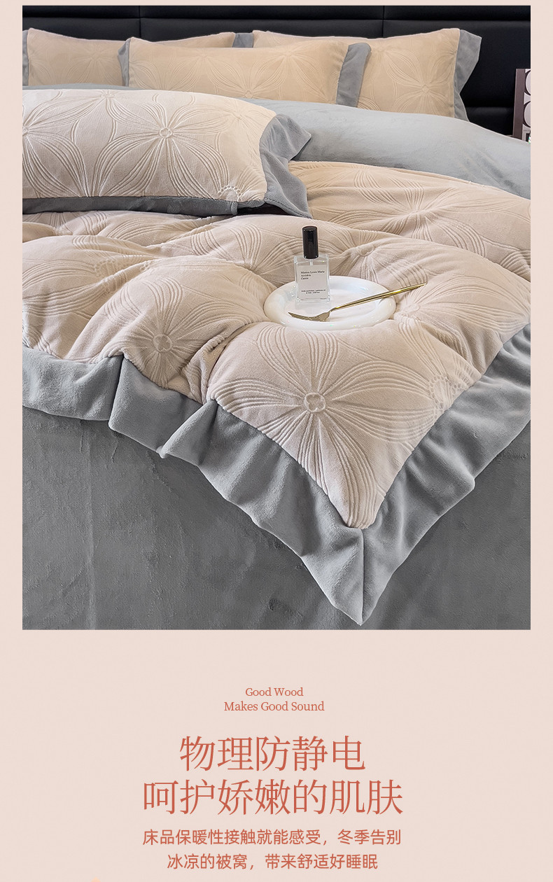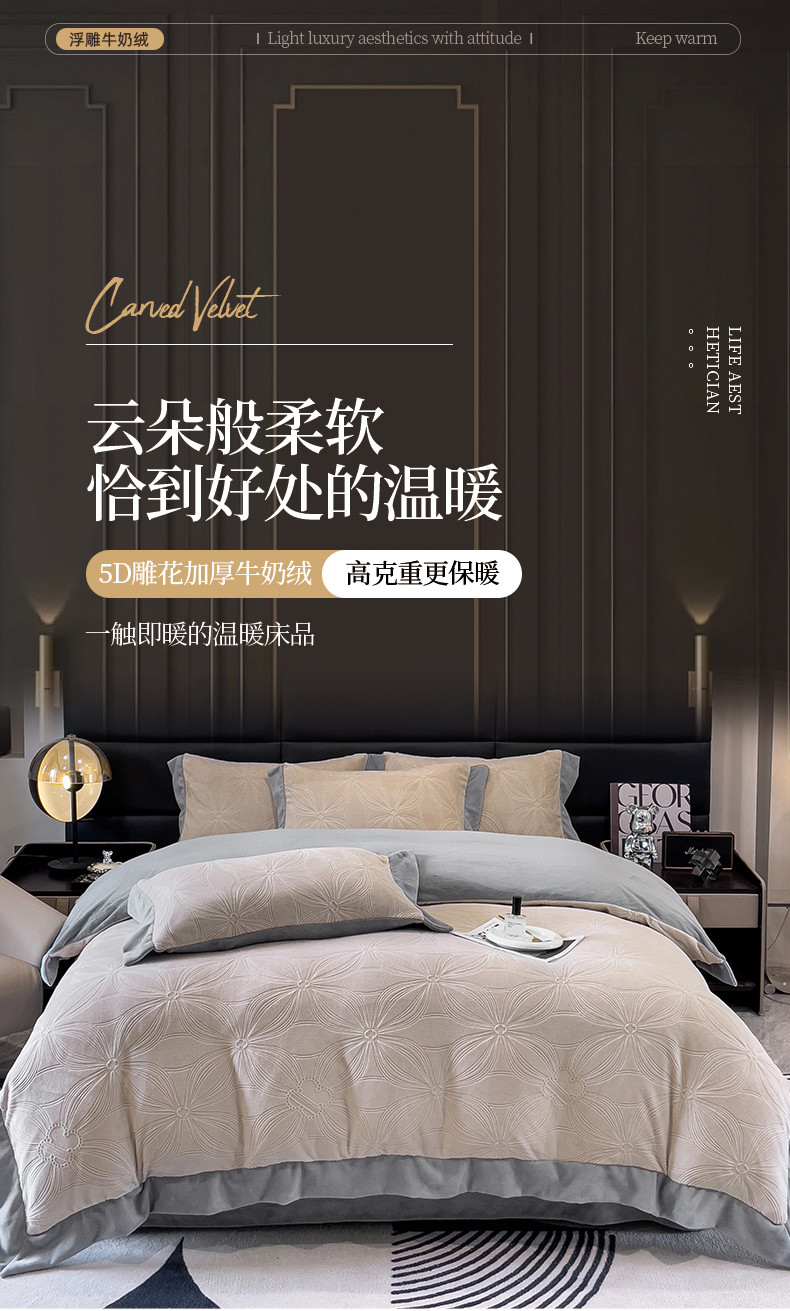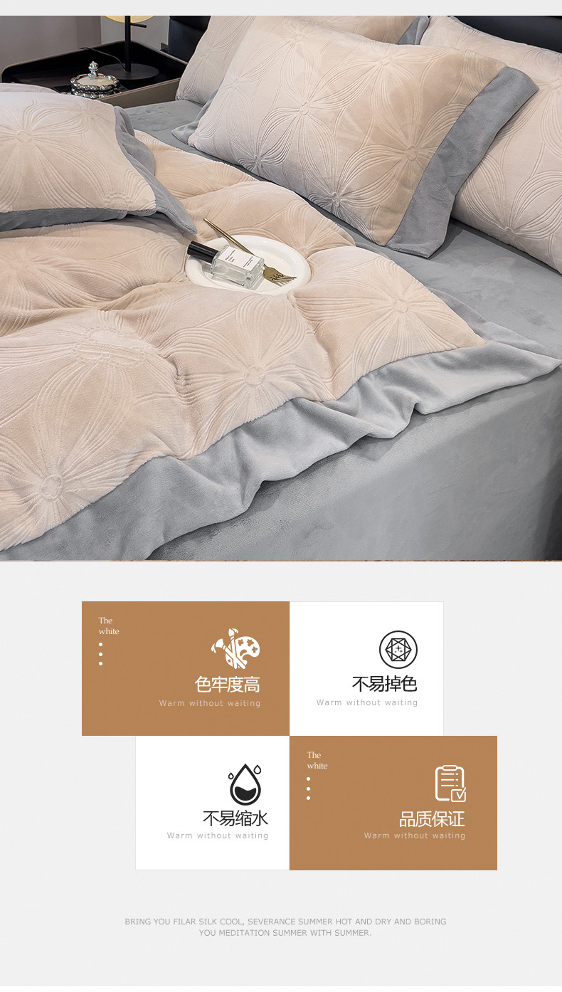 商品名称:KA 2023冬季宽边雕花牛奶绒四件套 四叶草卡其