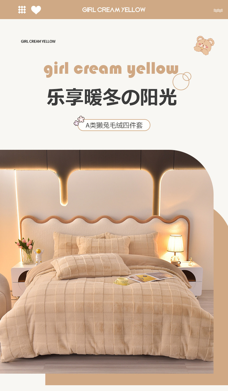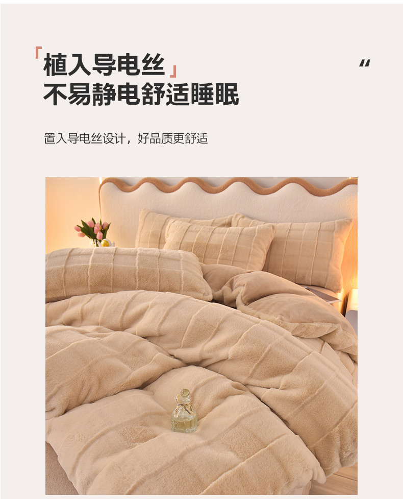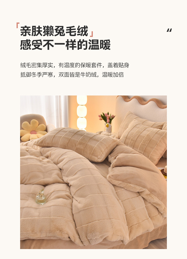 商品名称:喜梦缘家纺 2025爆款獭兔毛四件套兔兔绒剪花牛奶绒四件套