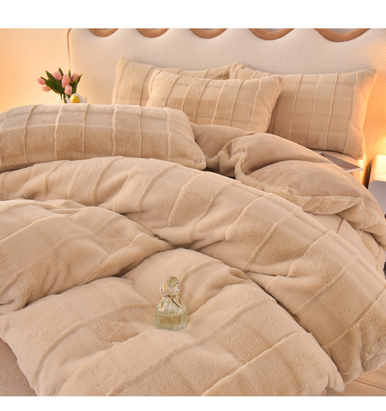 喜梦缘家纺 2025爆款獭兔毛四件套兔兔绒剪花牛奶绒四件套