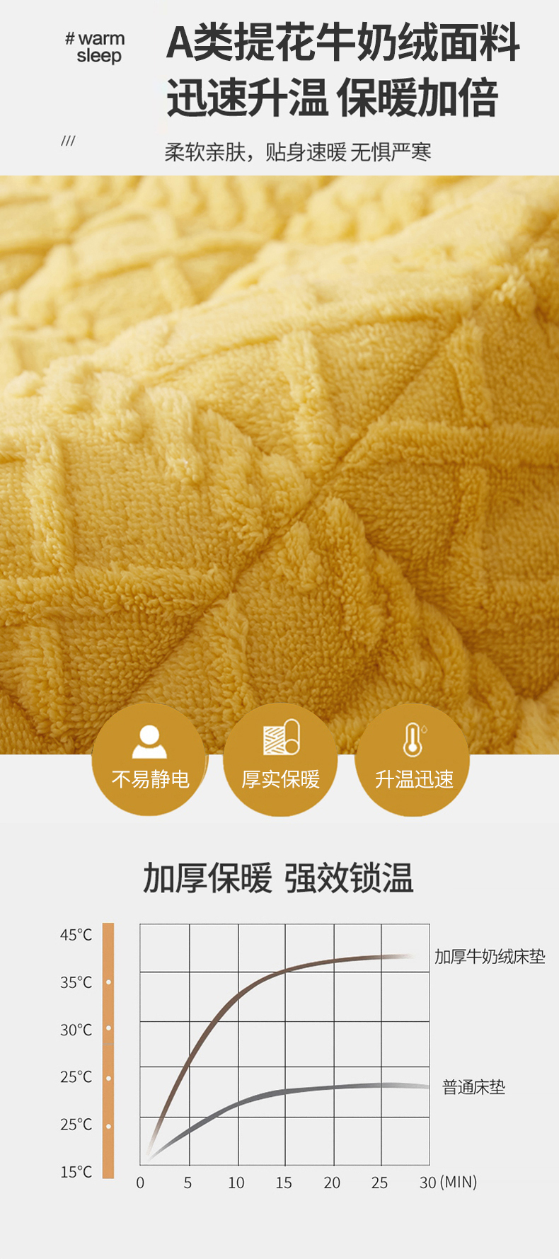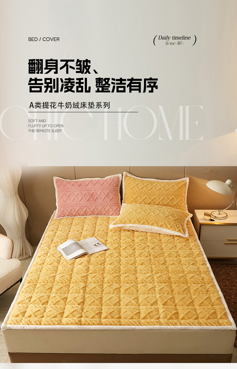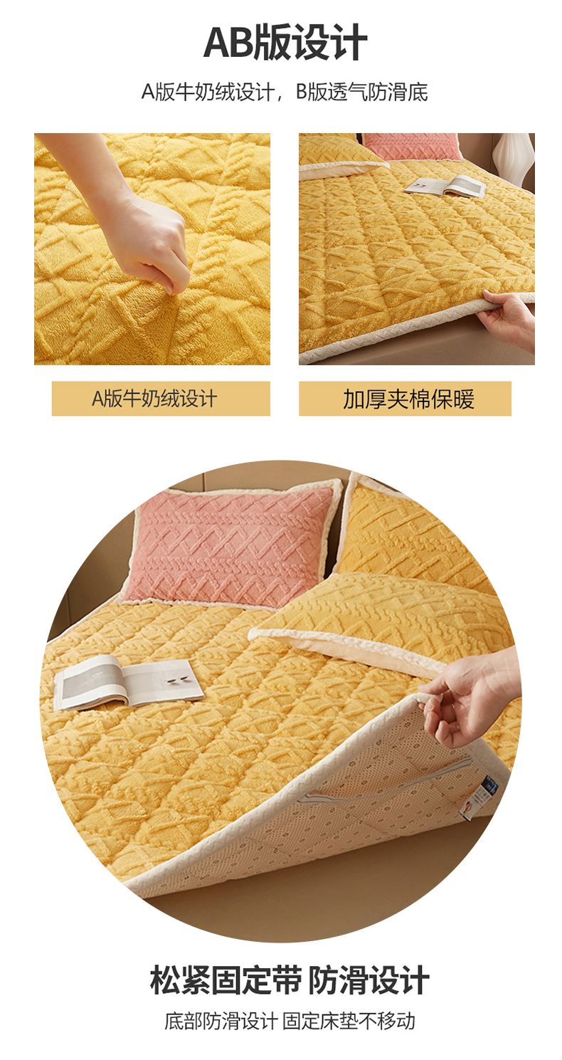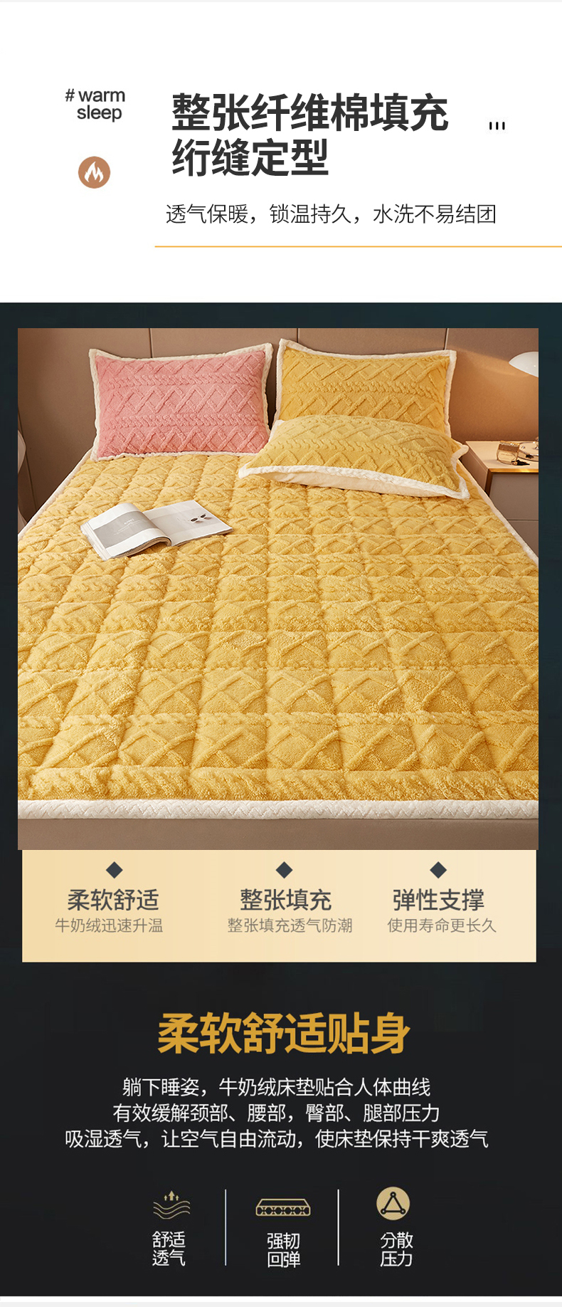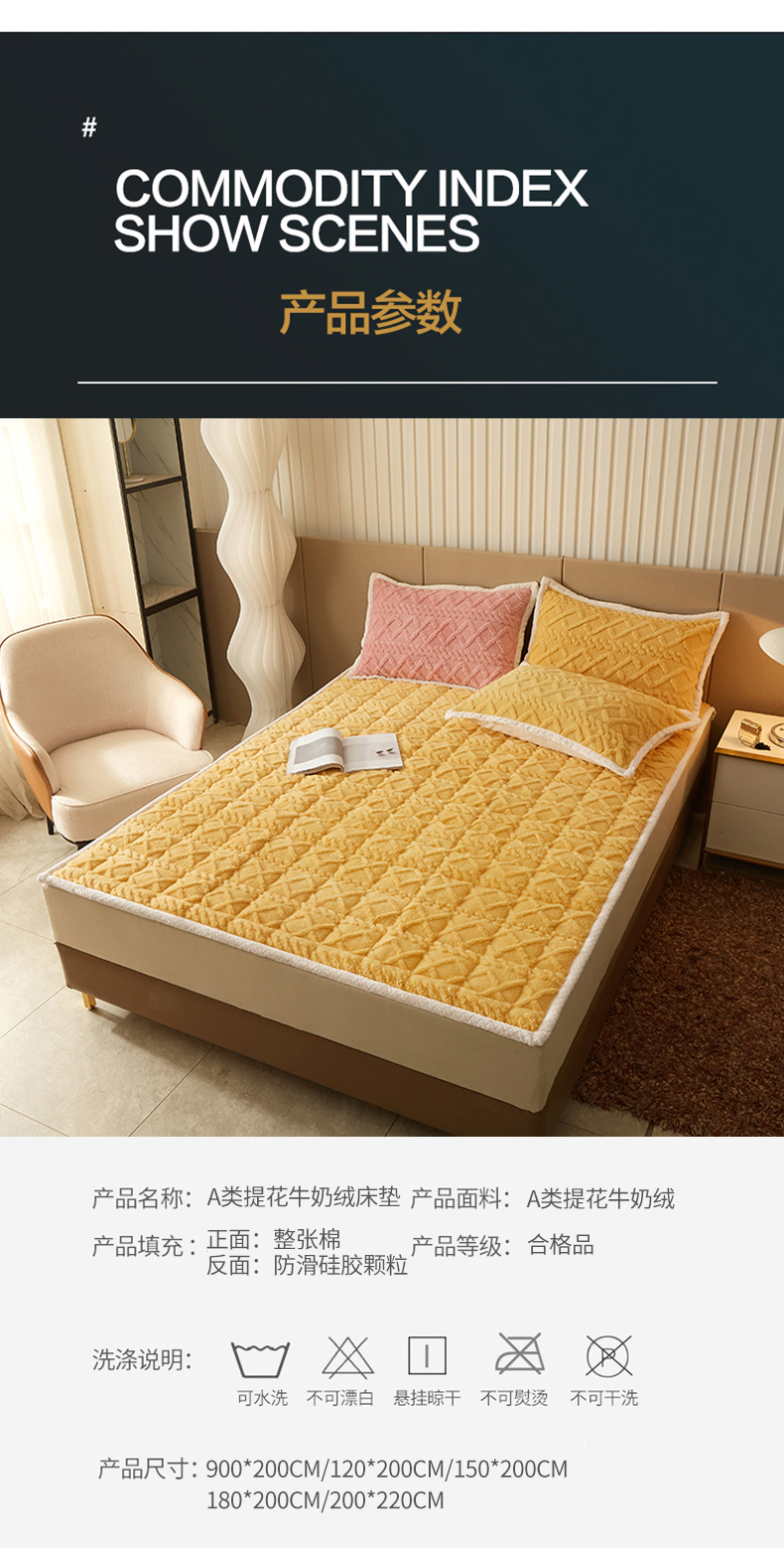 商品名称:东宇 2024新款A类提花牛奶绒床垫 柠檬黄