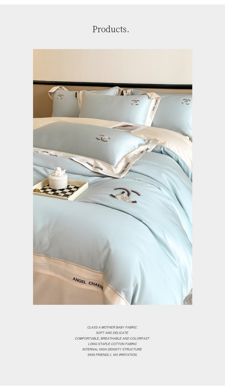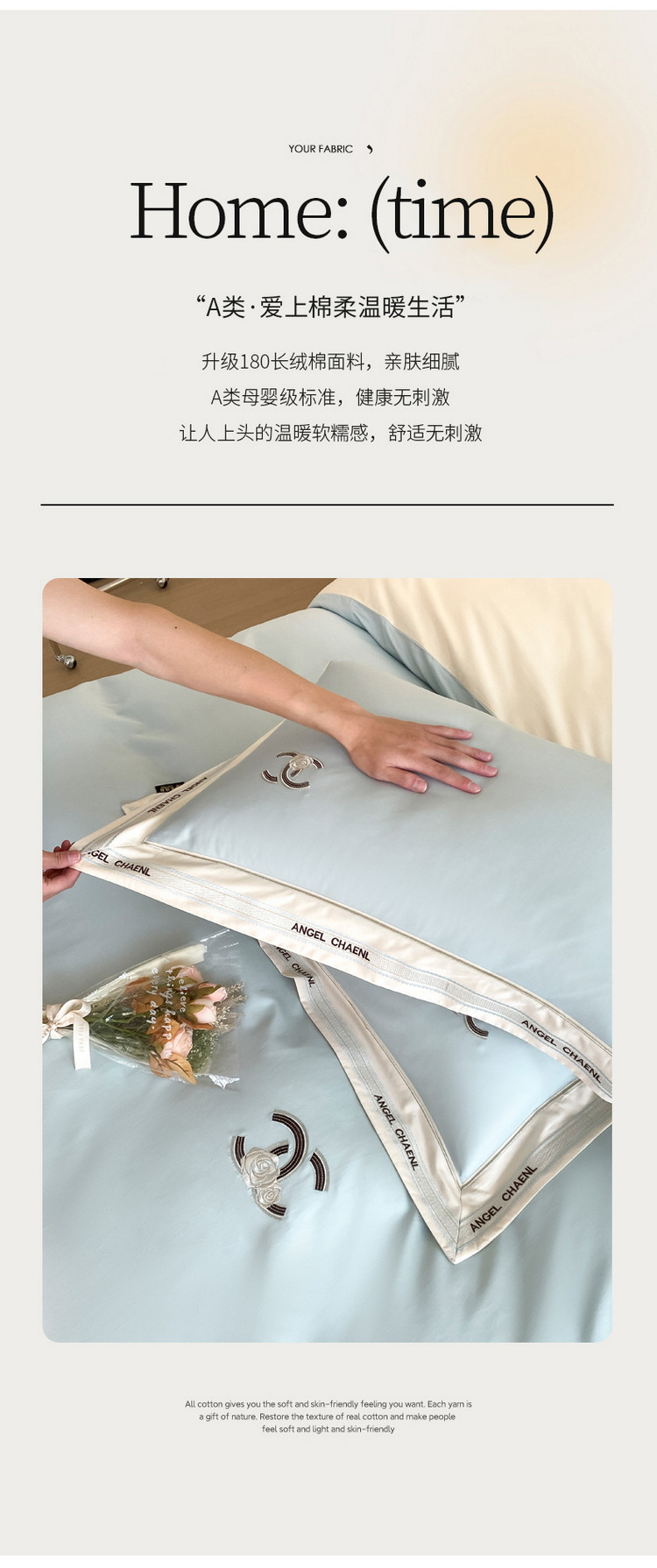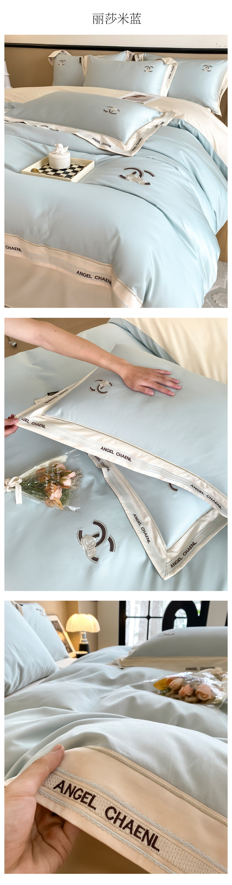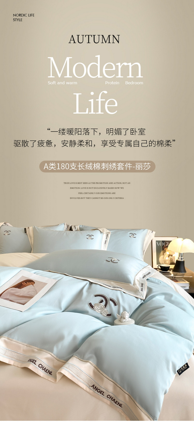 当前位置: 91家纺网 > 商品网购 > 床品套件 > 四件套 > 长绒棉四件套 > 618家纺 2023新款100支长绒棉轻奢刺绣四件套-丽莎系列 米蓝