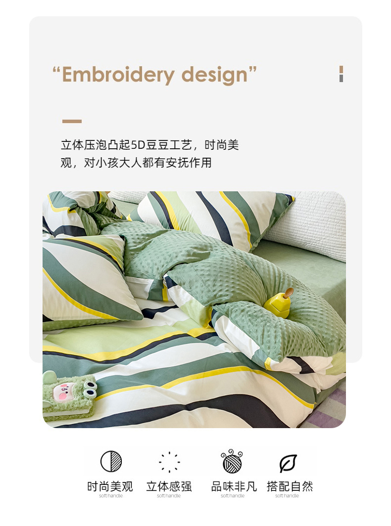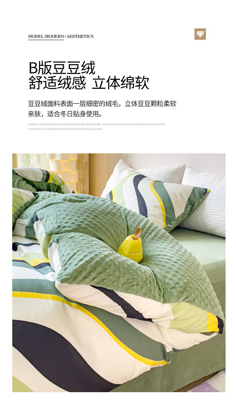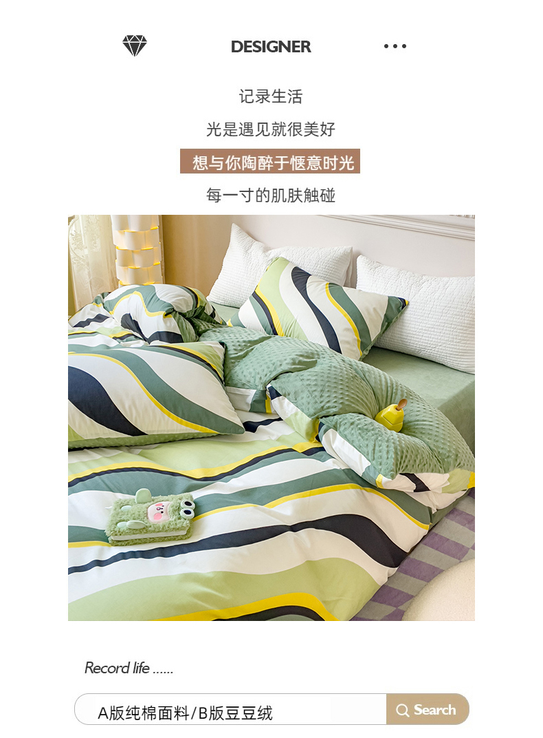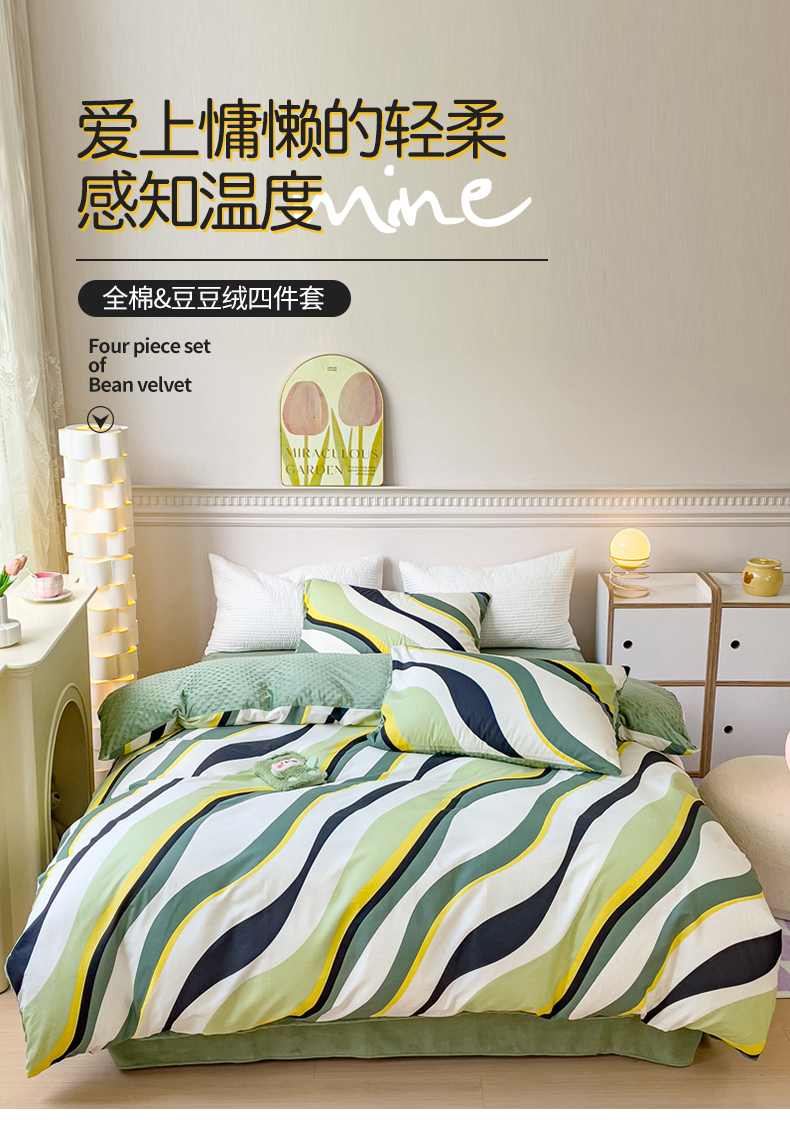 珺柔家纺 2023新款全棉加豆豆牛奶绒四件套 舞动青春