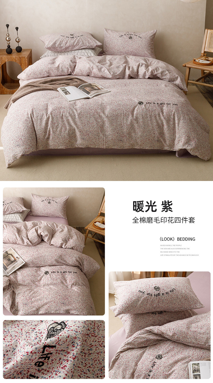 当前位置: 91家纺网 > 商品网购 > 床品套件 > 四件套 > 普通磨毛四件套 > 棉生活 2023新款全棉磨毛四件套 暖光紫