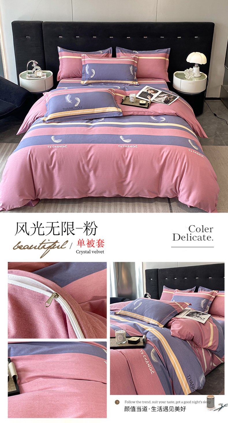 商品名称:铭成 2024新款全棉生态喷气加厚磨毛单品被套 风光无限-粉