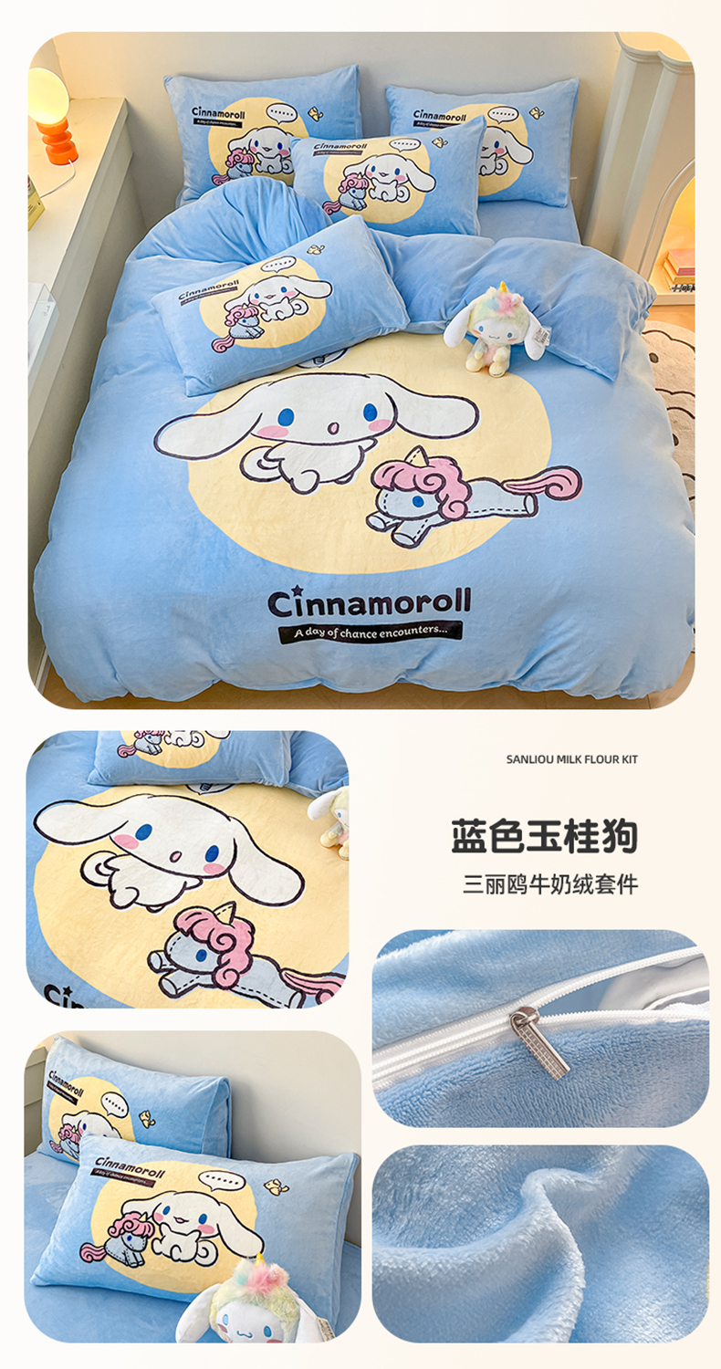 当前位置: 91家纺网 > 商品网购 > 床品套件 > 四件套 > 牛奶绒四件套 > 孩子王 2023正版授权直播三丽鸥卡通大版双面加厚牛奶绒系列 蓝色玉桂狗
