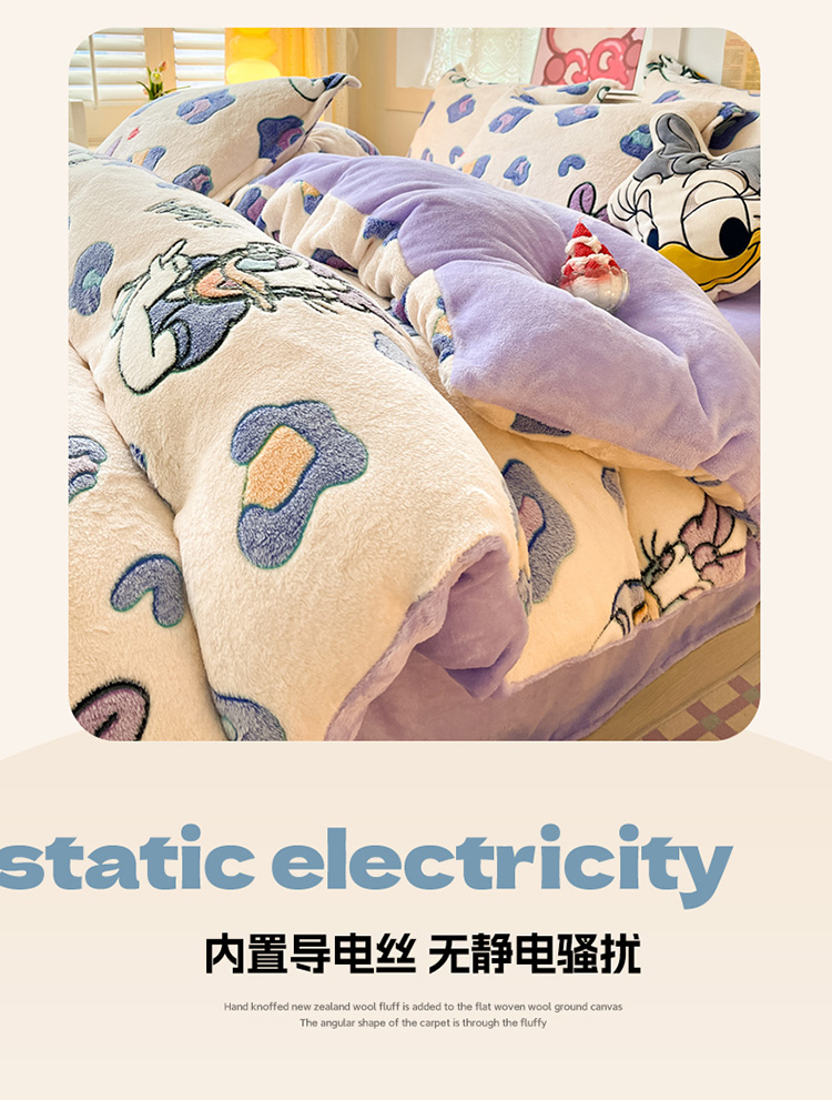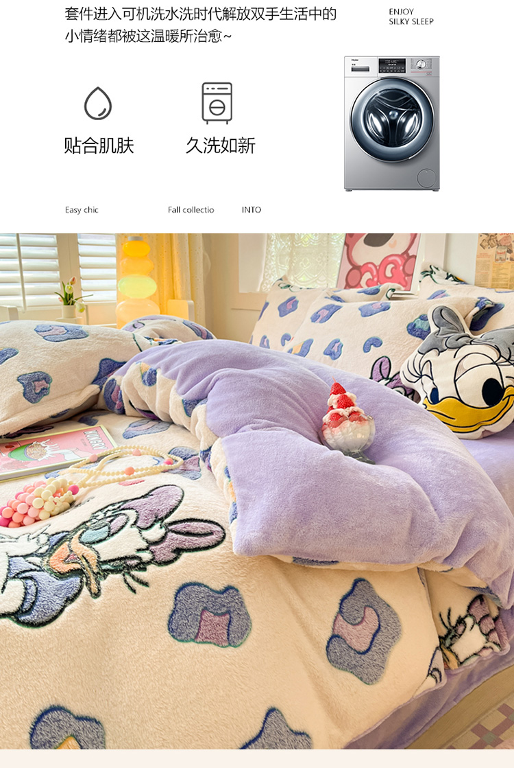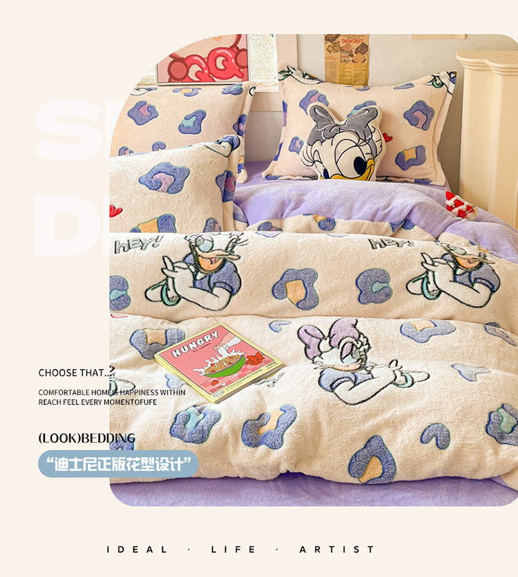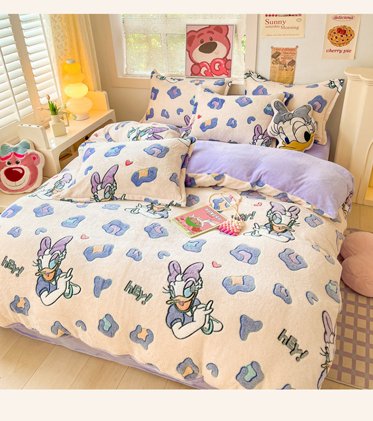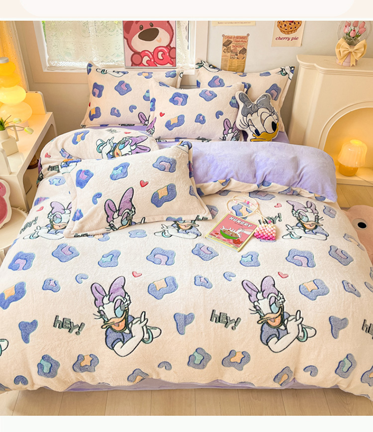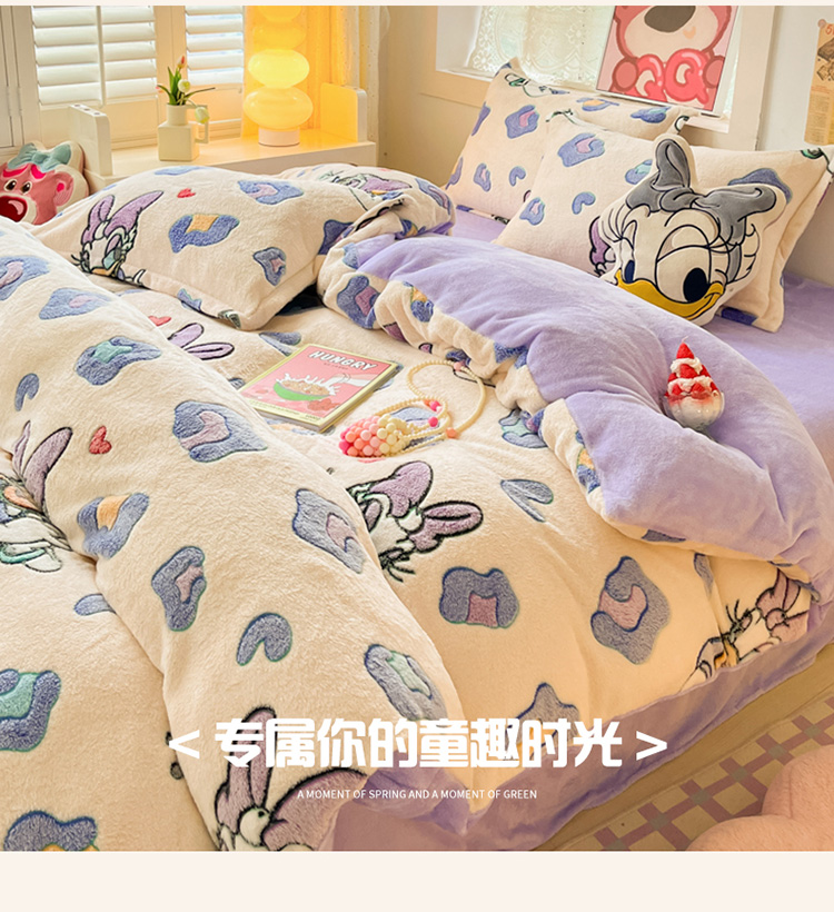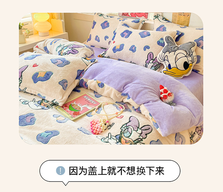 商品名称:柒月 2023新款迪士尼雪花绒四件套 豹纹唐老鸭