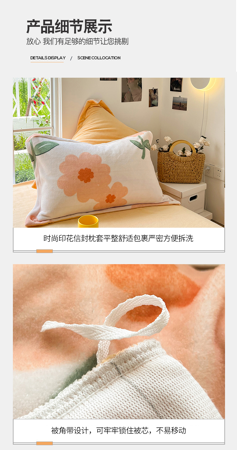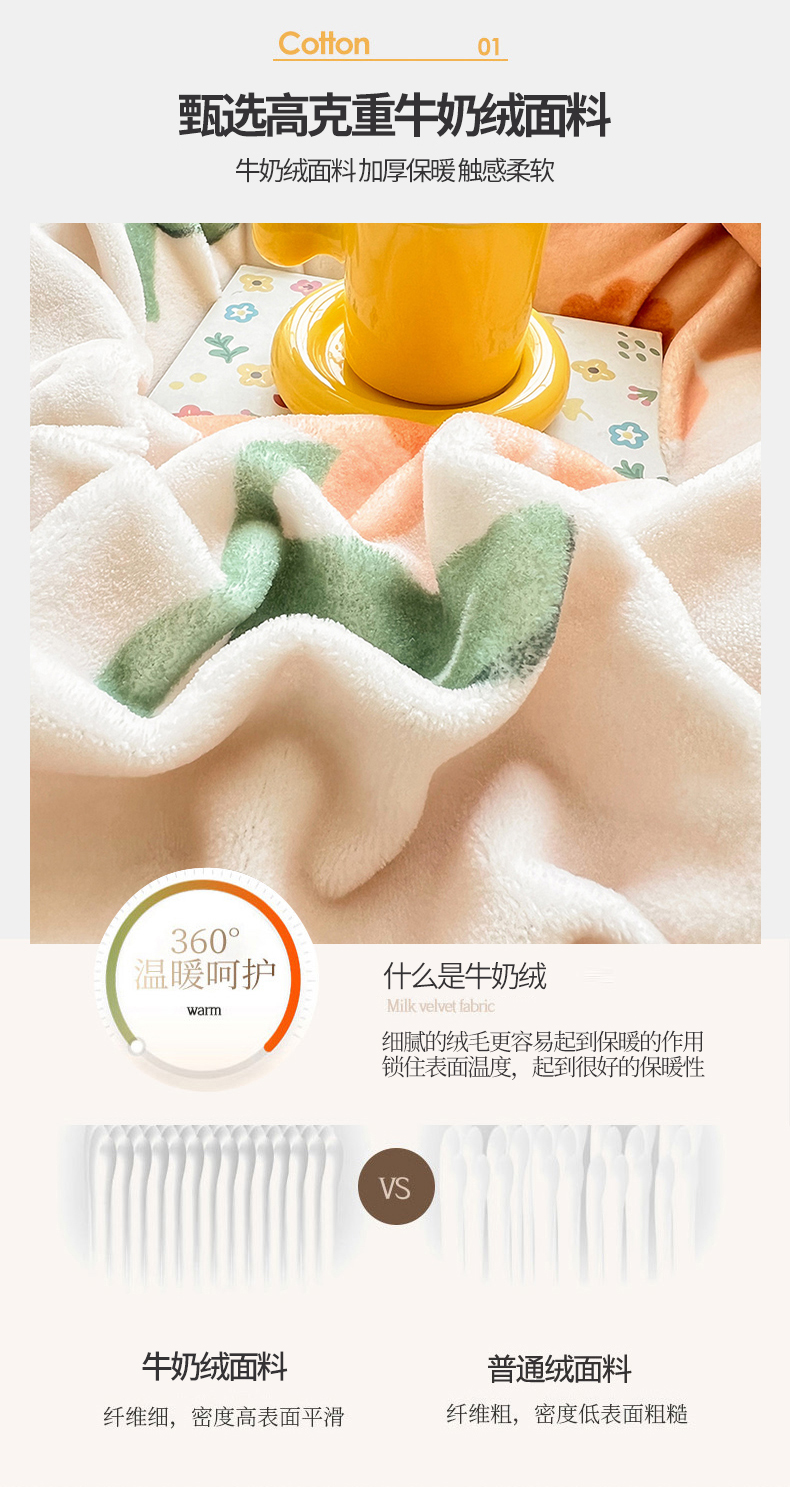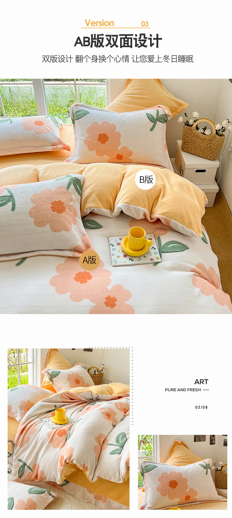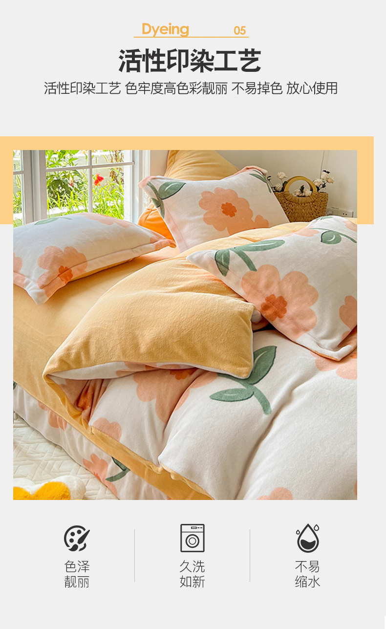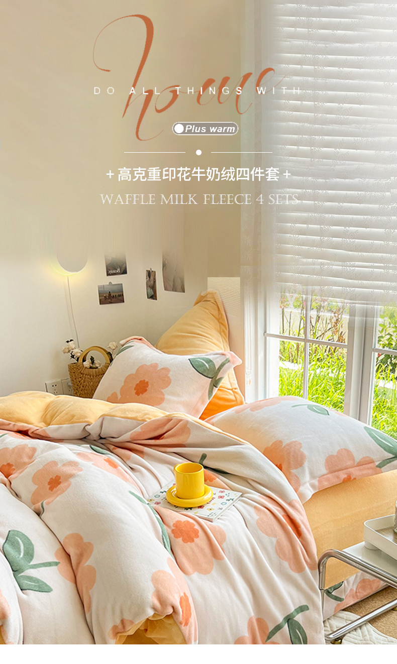 呗旺鹿 2023新款高克重加厚印花牛奶绒四件套直播 花语