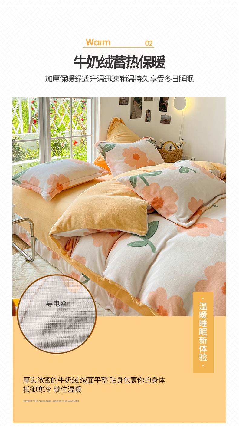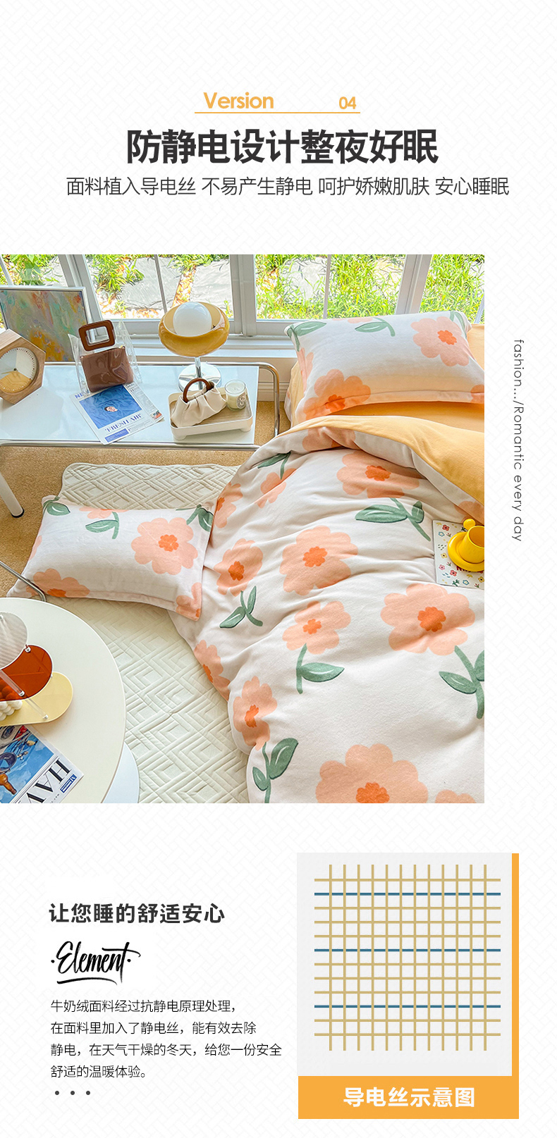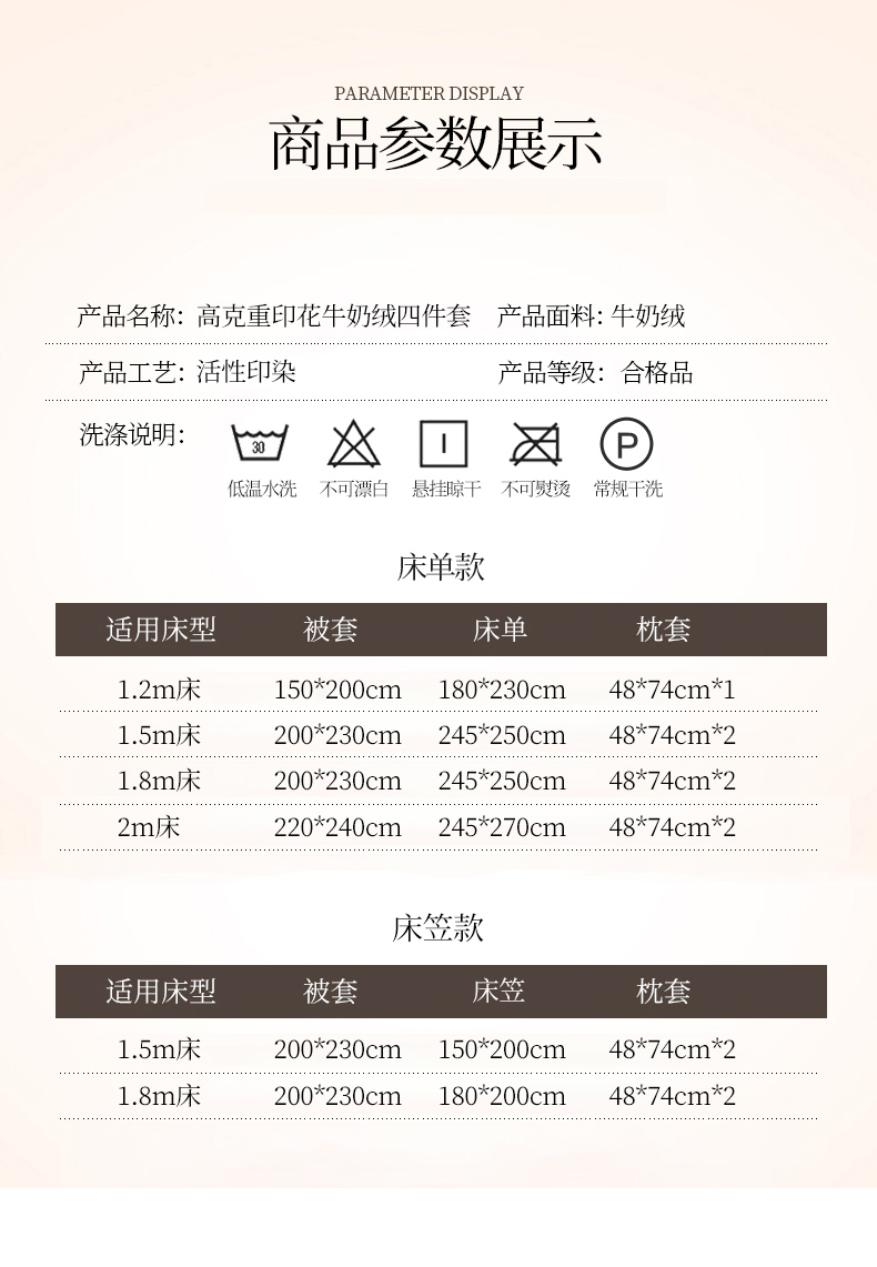 商品名称:呗旺鹿 2023新款高克重加厚印花牛奶绒四件套直播 花语
