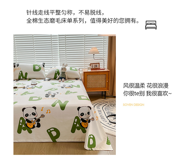 芃成家纺 2023磨毛单床单 艺术熊猫