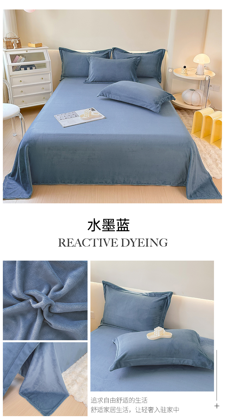 商品名称:2023年新款多功能毛毯牛奶绒床单三件套 水墨蓝