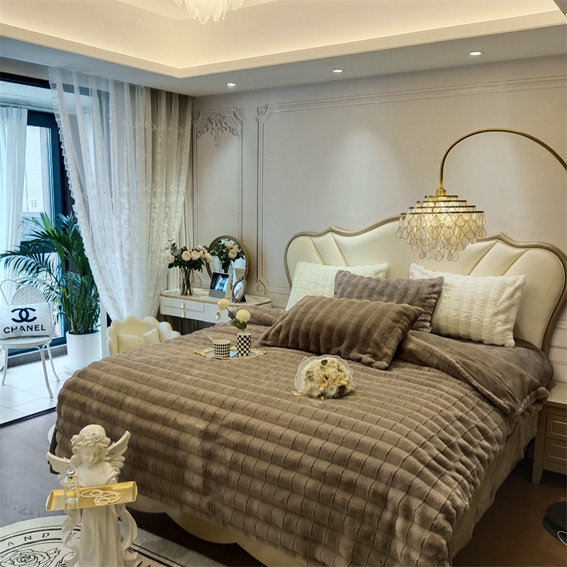 时亿 2023新款320g獭兔毛绒绒四件套 古典灰