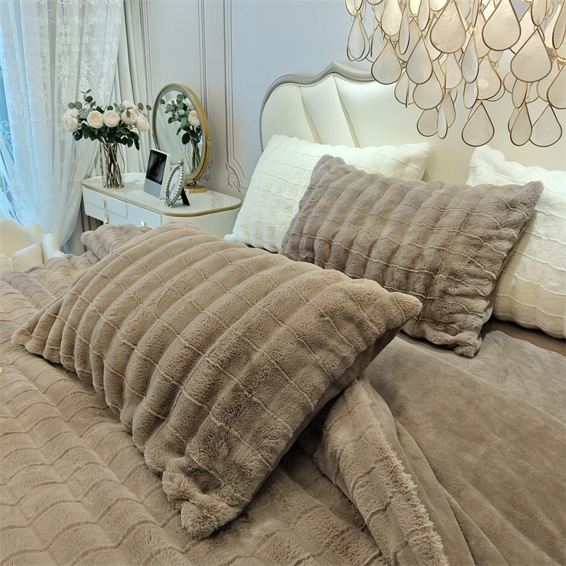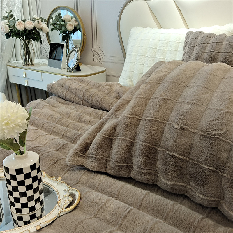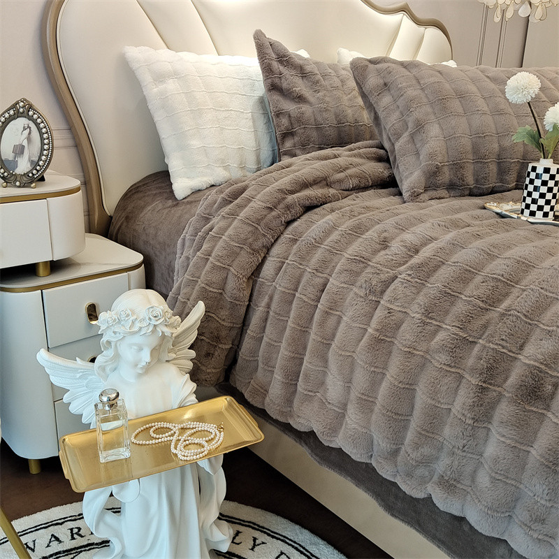 商品名称:时亿 2023新款320g獭兔毛绒绒四件套 古典灰