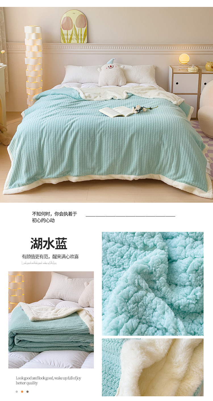 春妮 2023新款A面编织绒+B面兔毛绒毛毯双层盖毯 湖水蓝