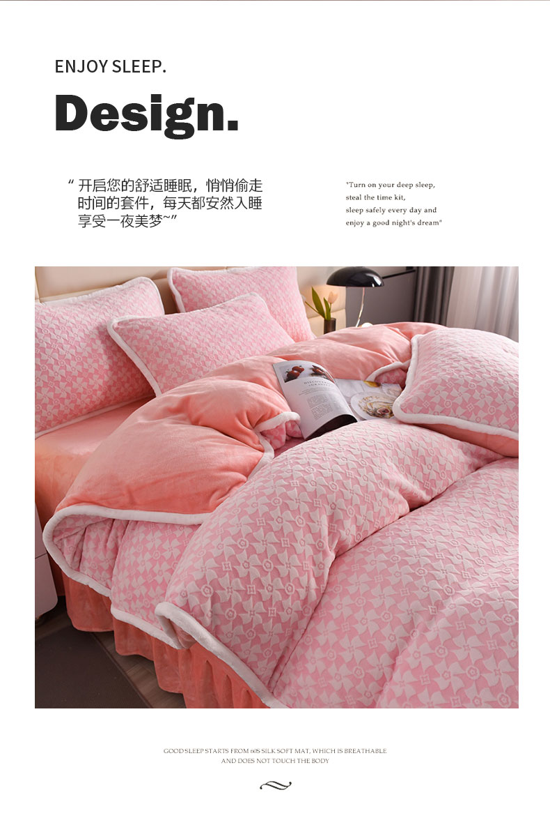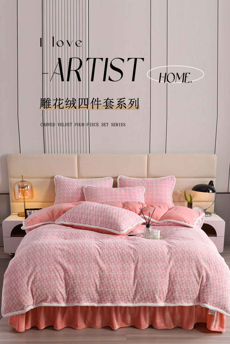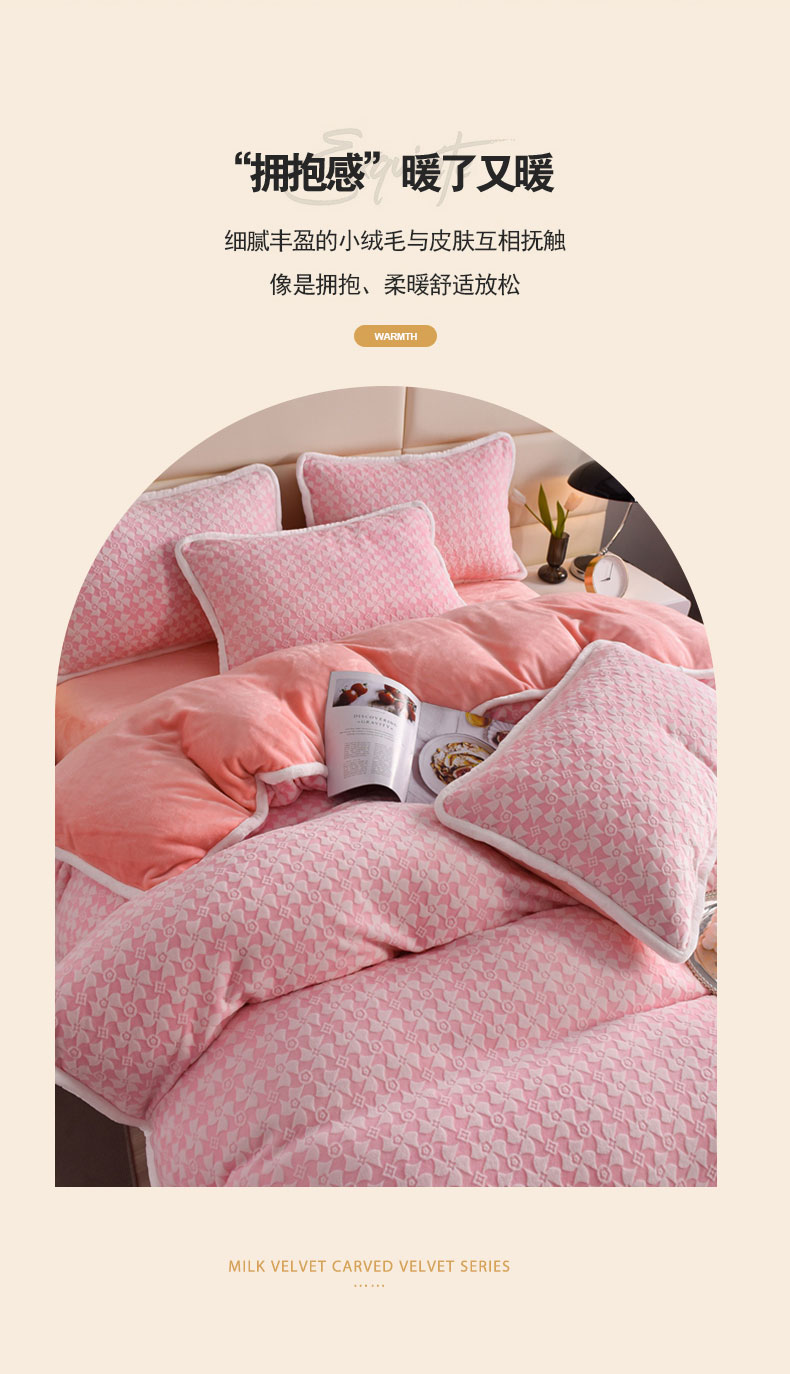 畅畅家纺 2023新款A类雕花绒牛奶绒四件套 大风车-粉