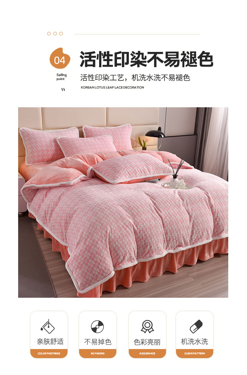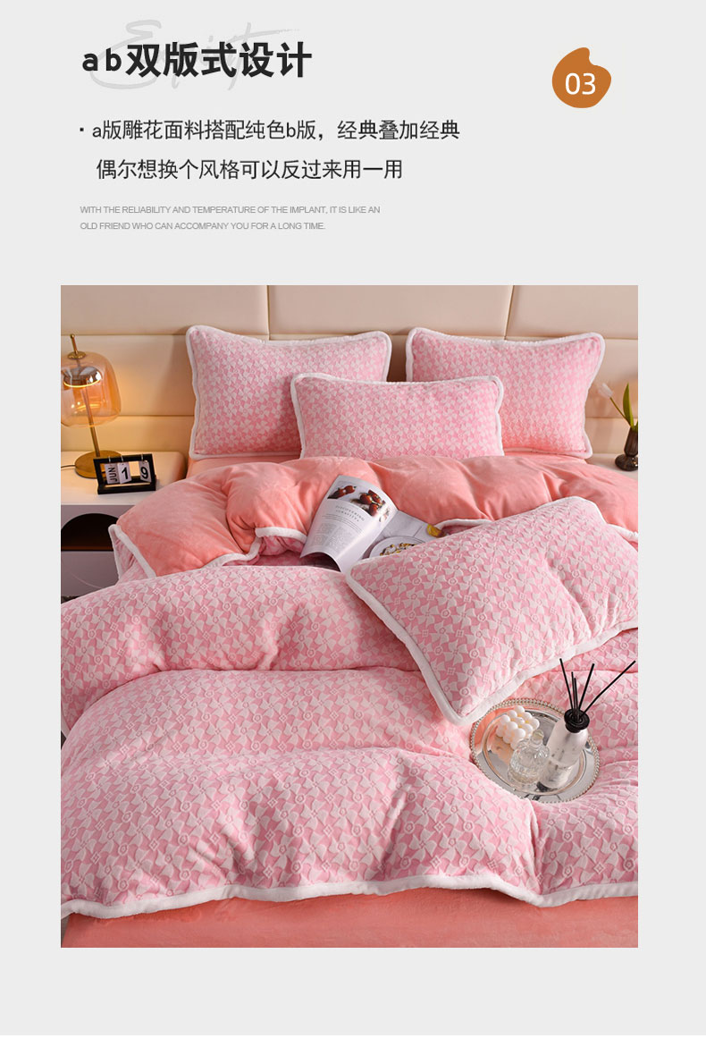 商品名称:畅畅家纺 2023新款A类雕花绒牛奶绒四件套 大风车-粉
