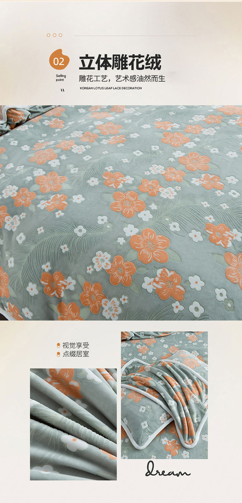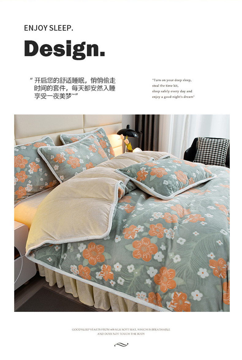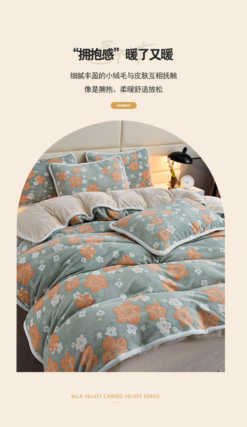 商品名称:畅畅家纺 2023新款A类雕花绒牛奶绒四件套 海棠花-浅绿