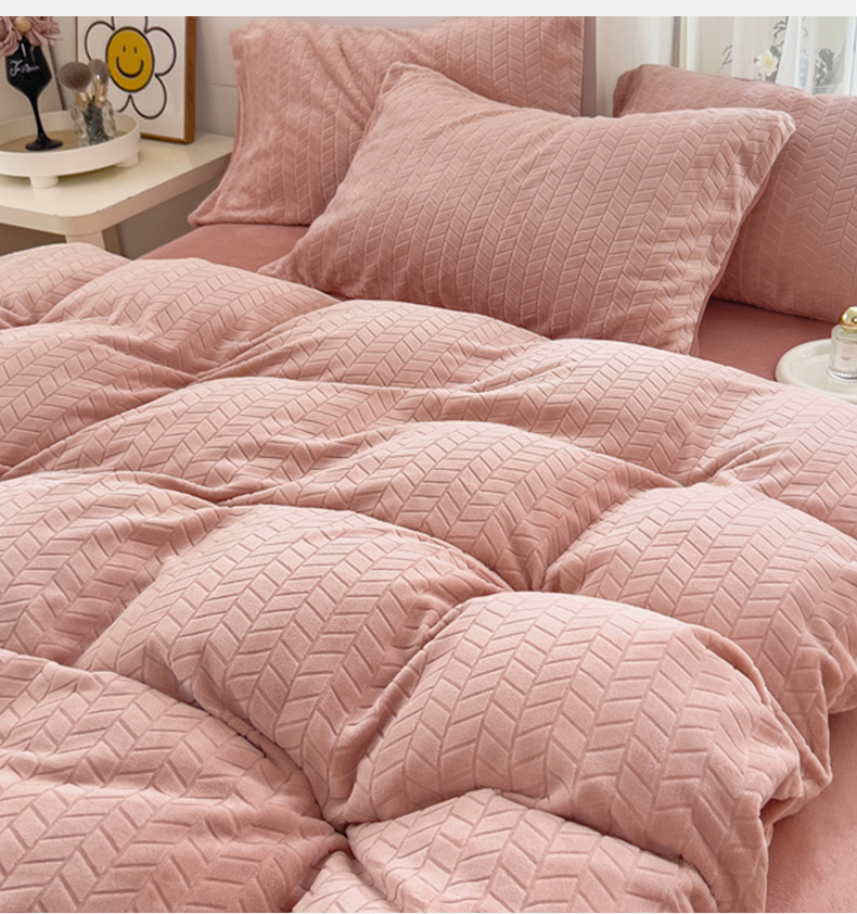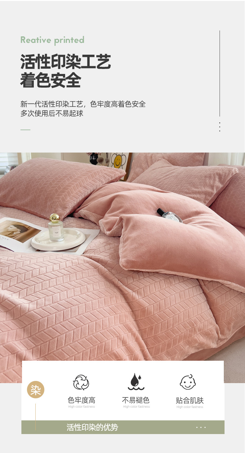 商品名称:全季家居 2023新款小清新A类高克重加厚印花牛奶绒被套单件 粉玉