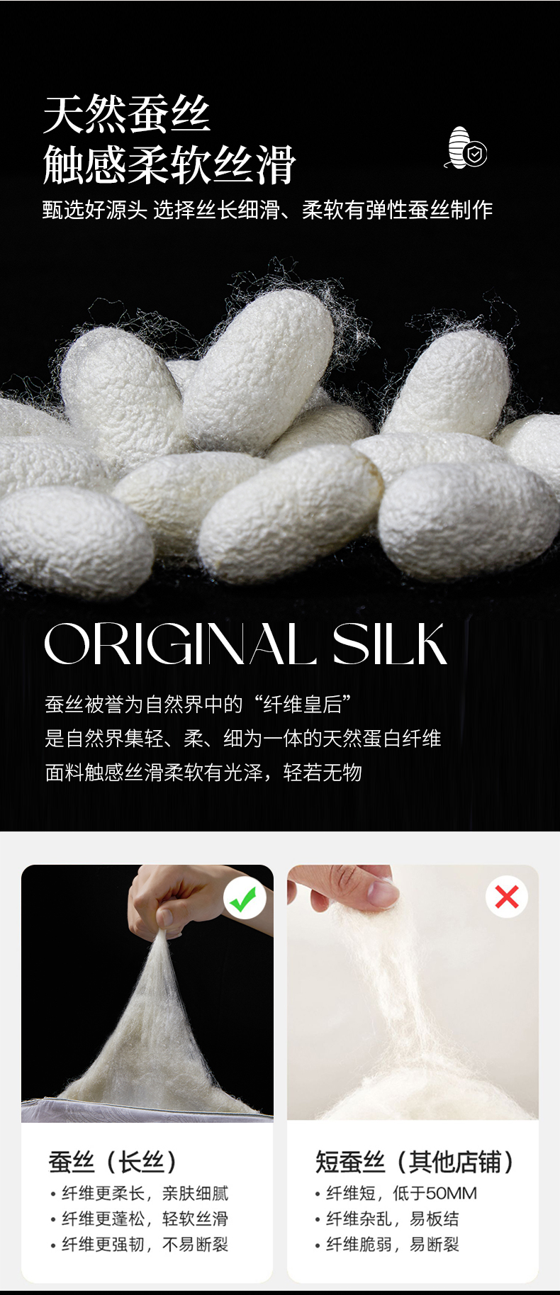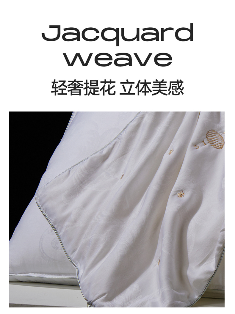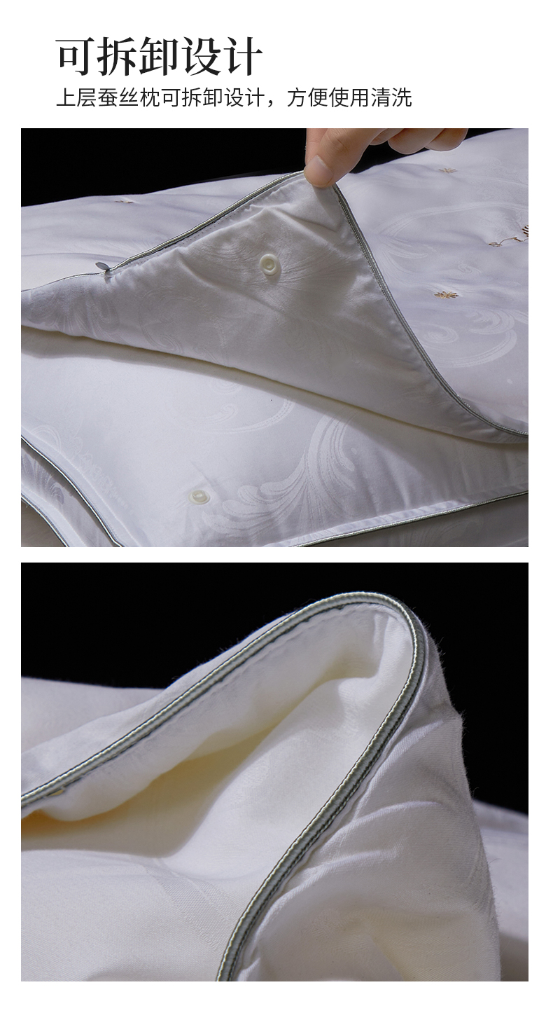 上层蚕丝可脱卸+刺绣花朵定位+下层羽丝绒分区定型