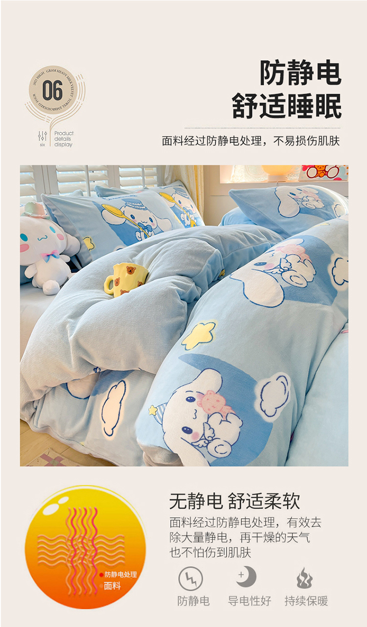 商品名称:星座 2025三丽鸥牛奶绒四件套 晚安玉桂狗