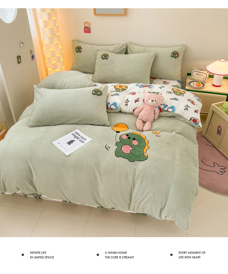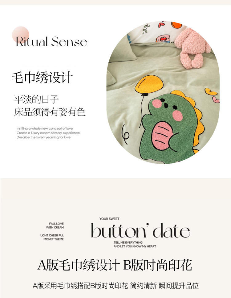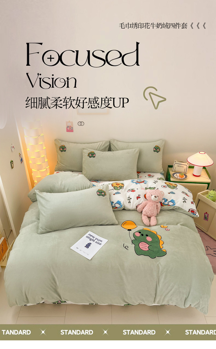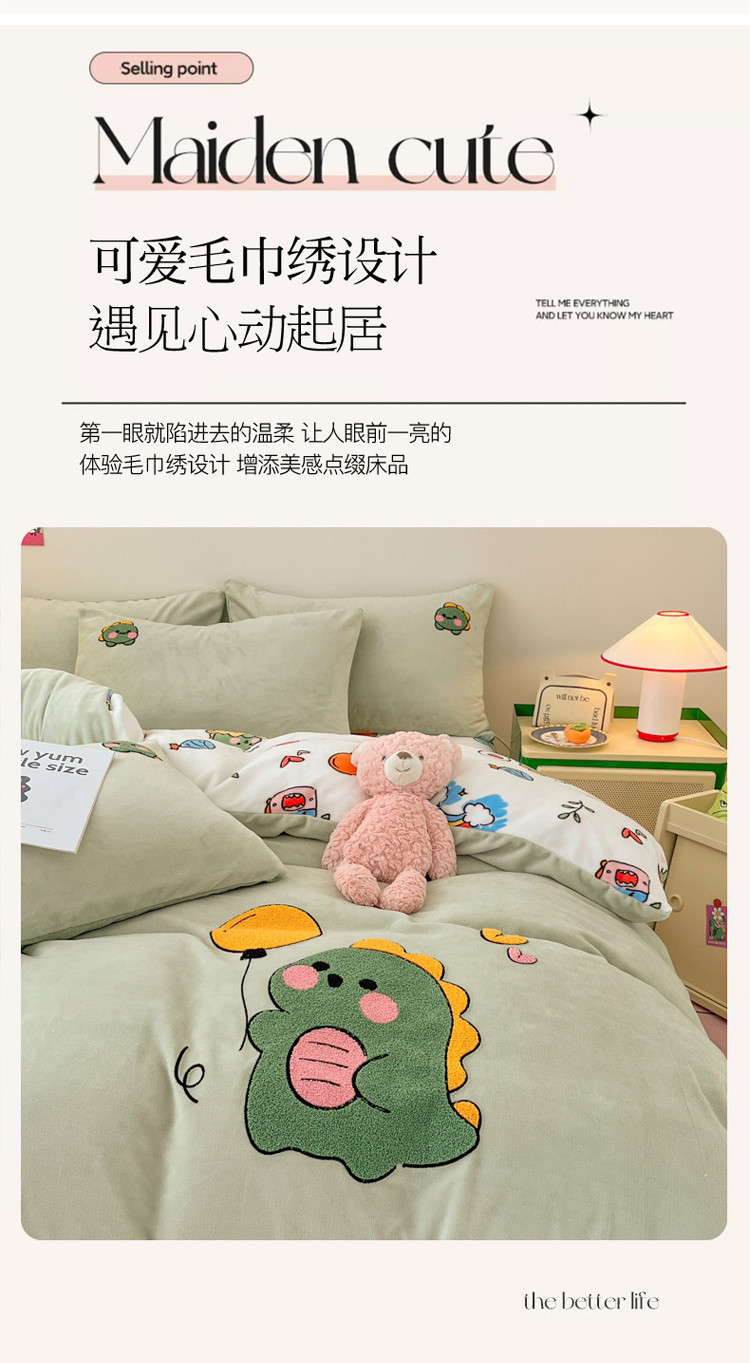 寐居 2023新款印花毛巾绣牛奶绒四件套 毛巾绣-快乐恐龙