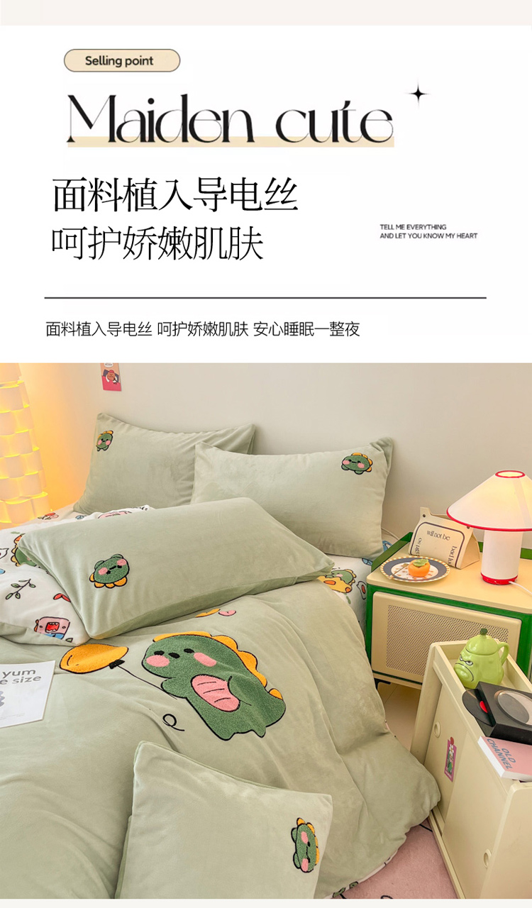 商品名称:寐居 2023新款印花毛巾绣牛奶绒四件套 毛巾绣-快乐恐龙