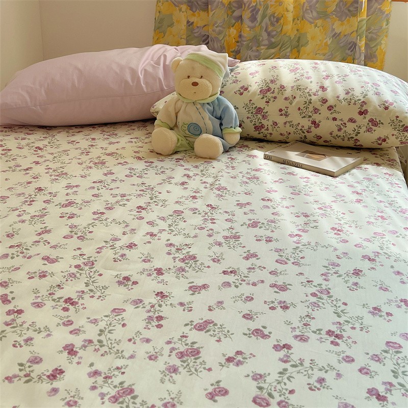 商品名称:桃喜 2024新款韩系ins博主风纯色碎花混搭40s水洗棉单床单 普罗旺斯