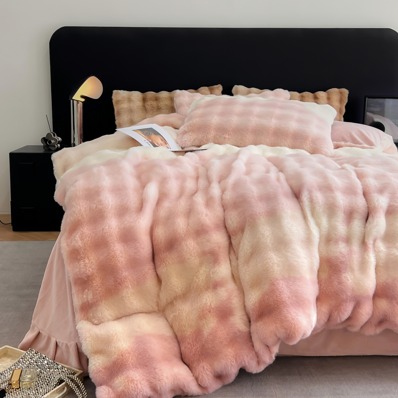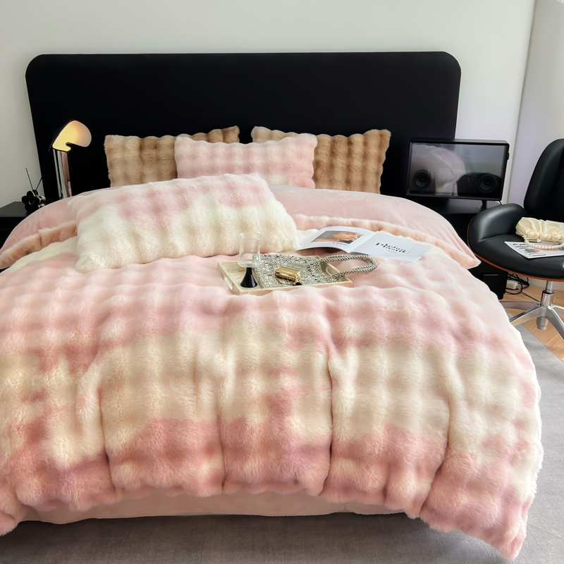 商品名称:满座家居 2025新款秋冬爆款七彩大泡泡兔兔绒兔毛绒牛奶绒四件套 七彩粉