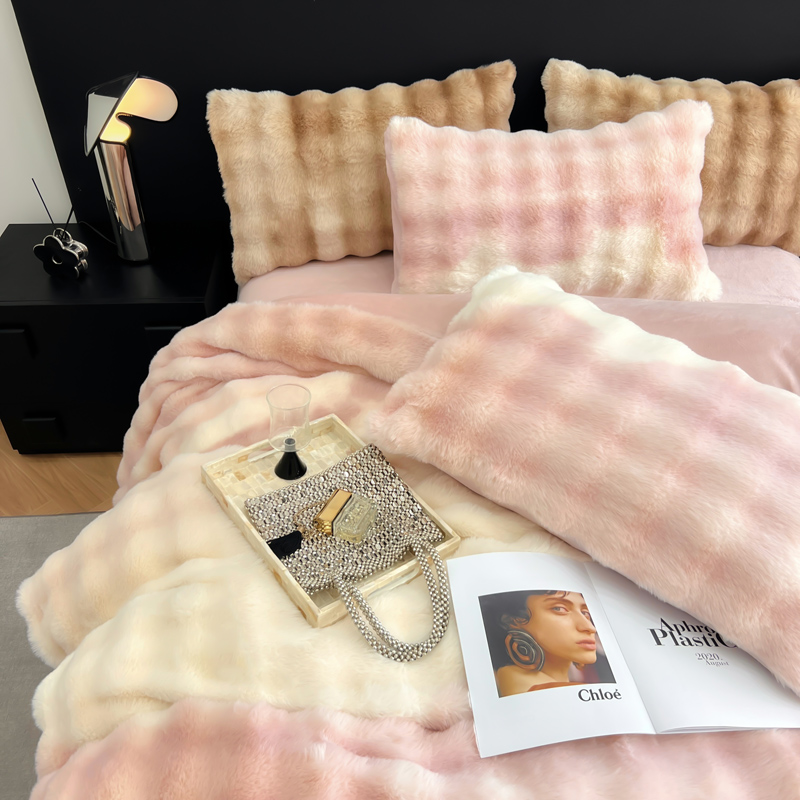 满座家居 2025新款秋冬爆款七彩大泡泡兔兔绒兔毛绒牛奶绒四件套 七彩粉