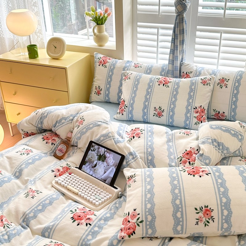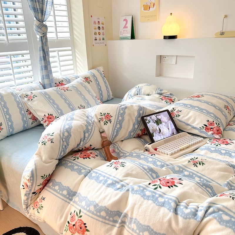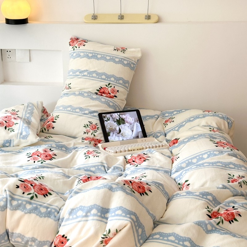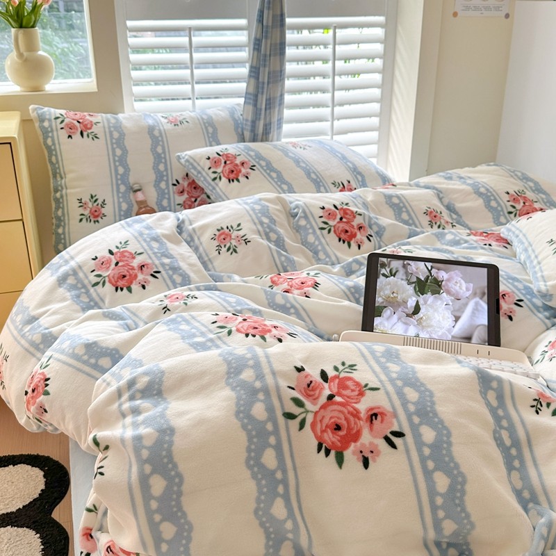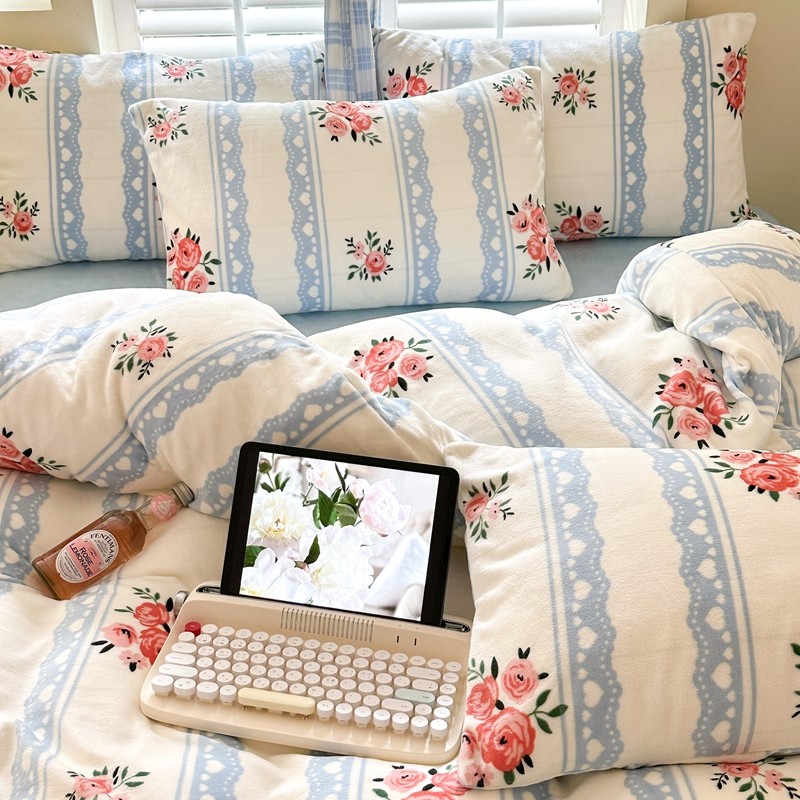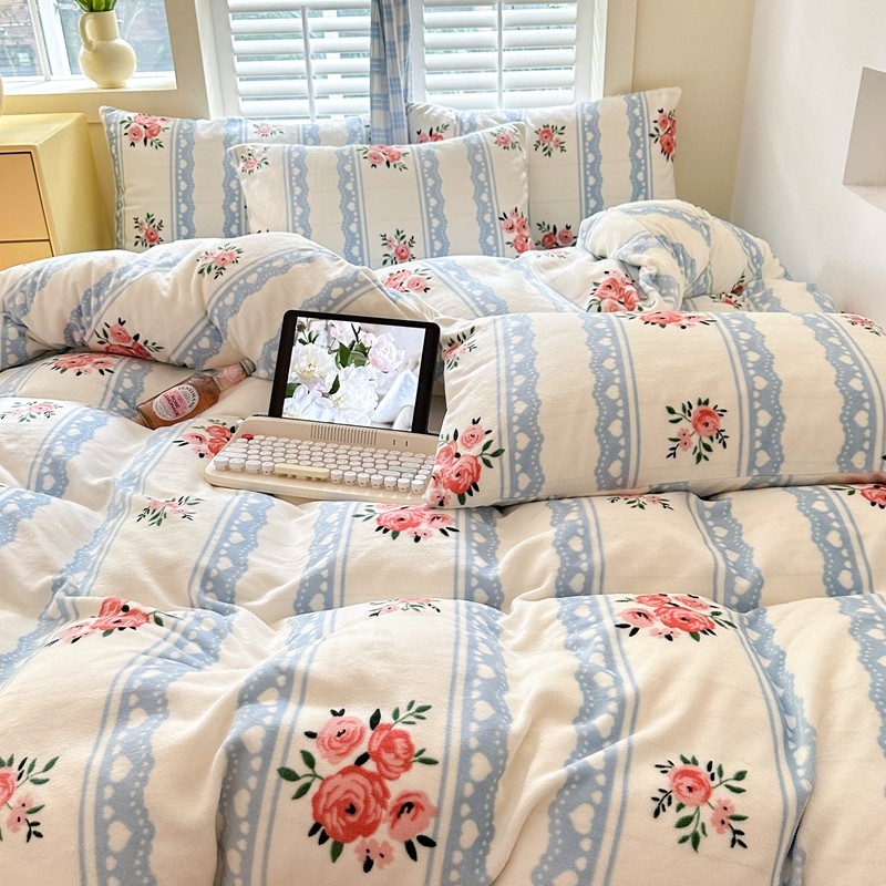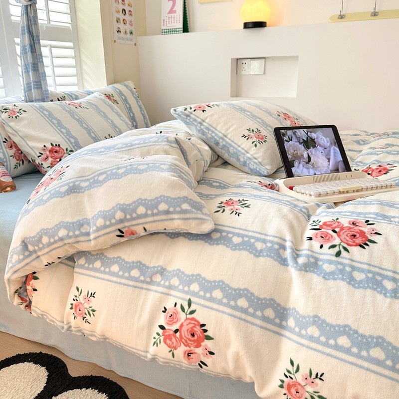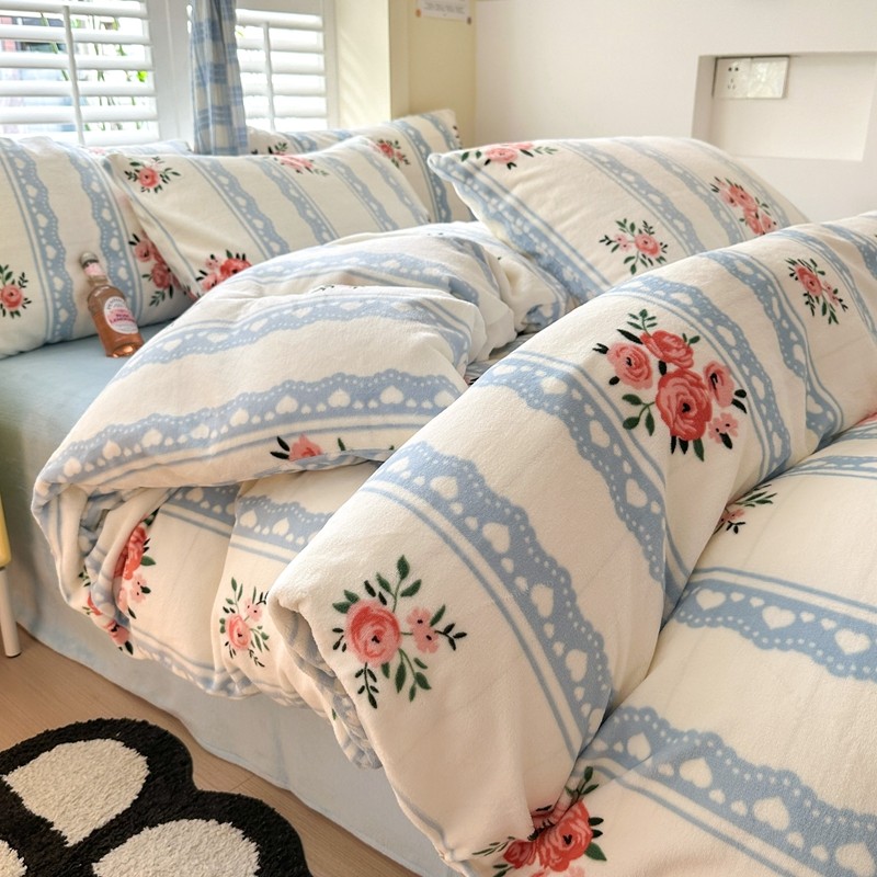 2023秋冬新款220克高克重牛奶绒印花四件套 花香