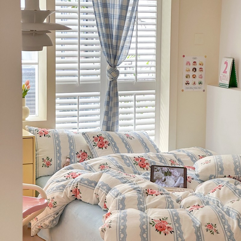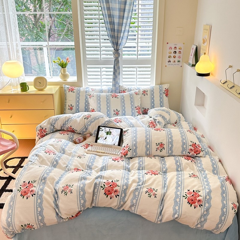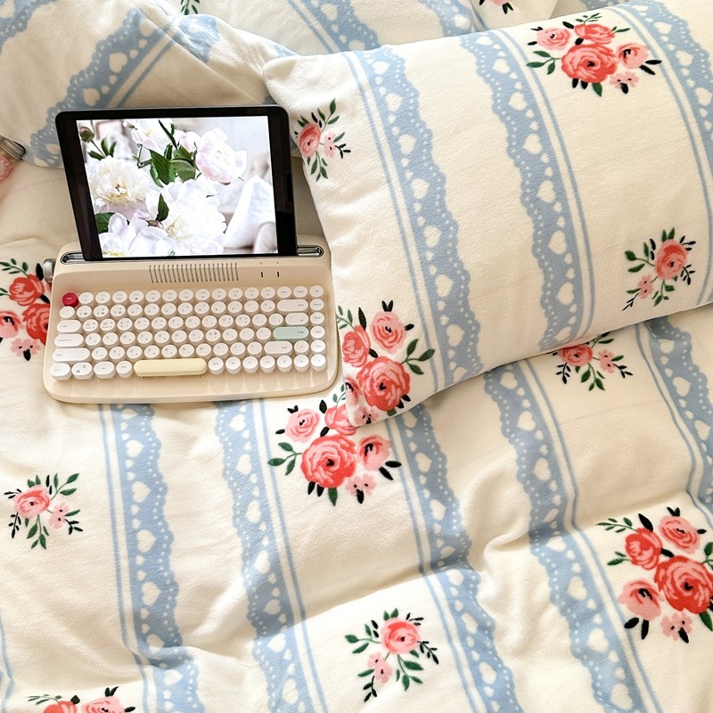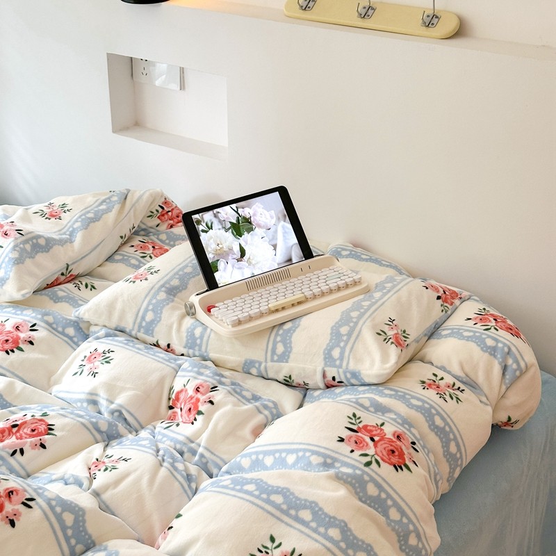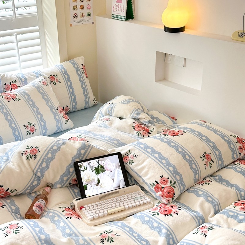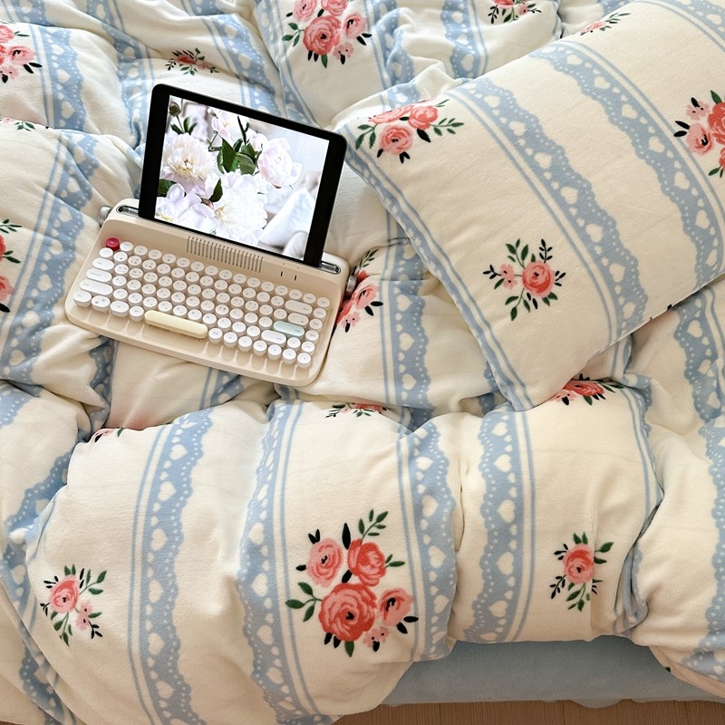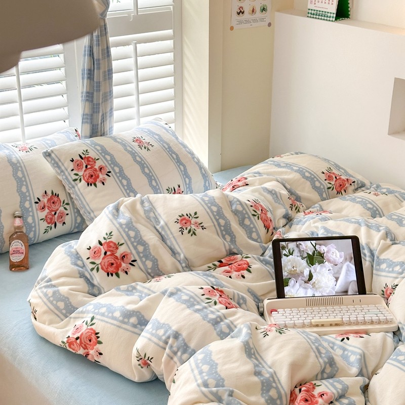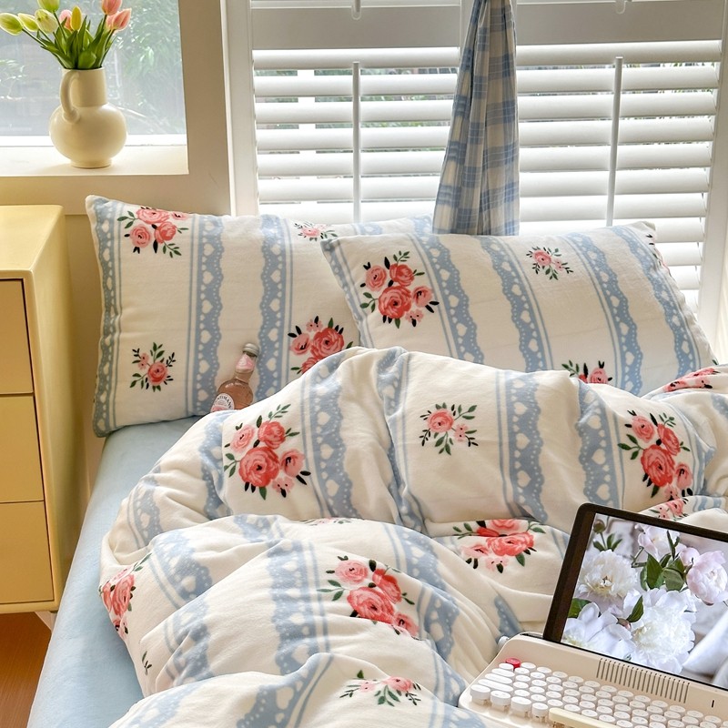 2023秋冬新款220克高克重牛奶绒印花四件套 花香