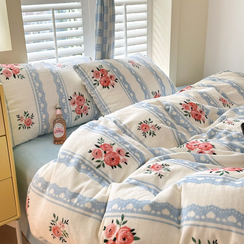 商品名称:2023秋冬新款220克高克重牛奶绒印花四件套 花香