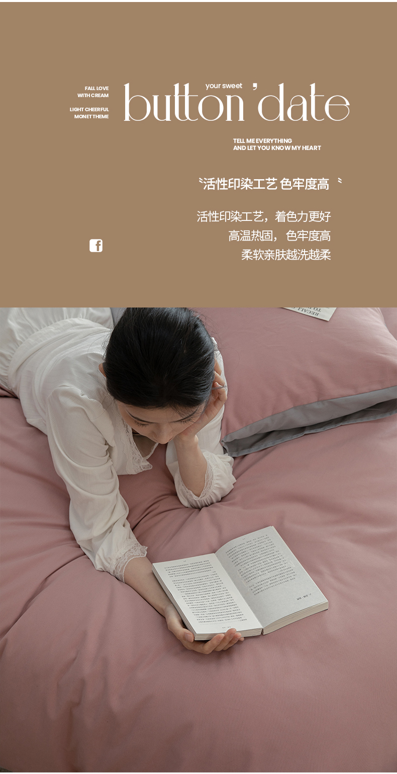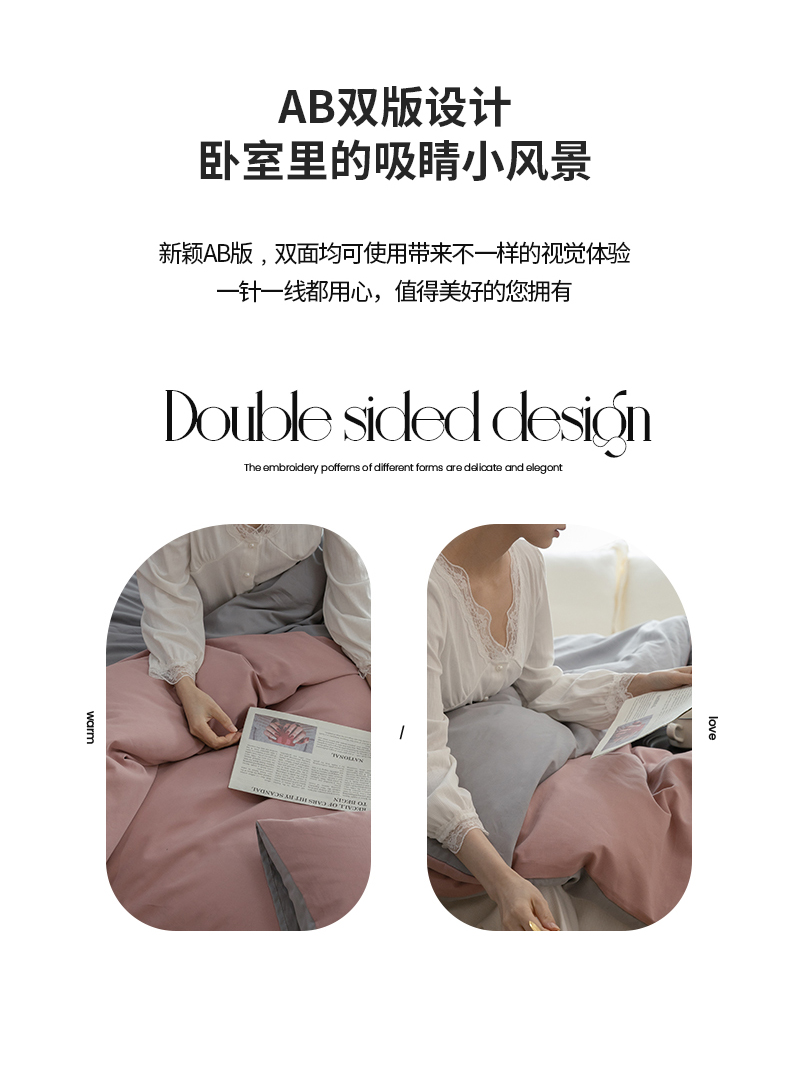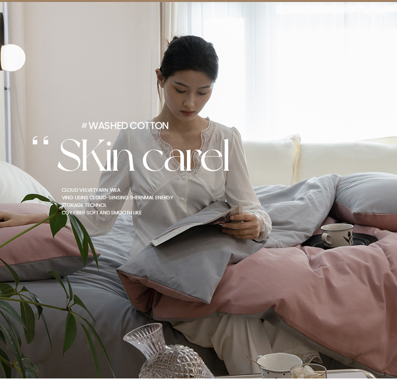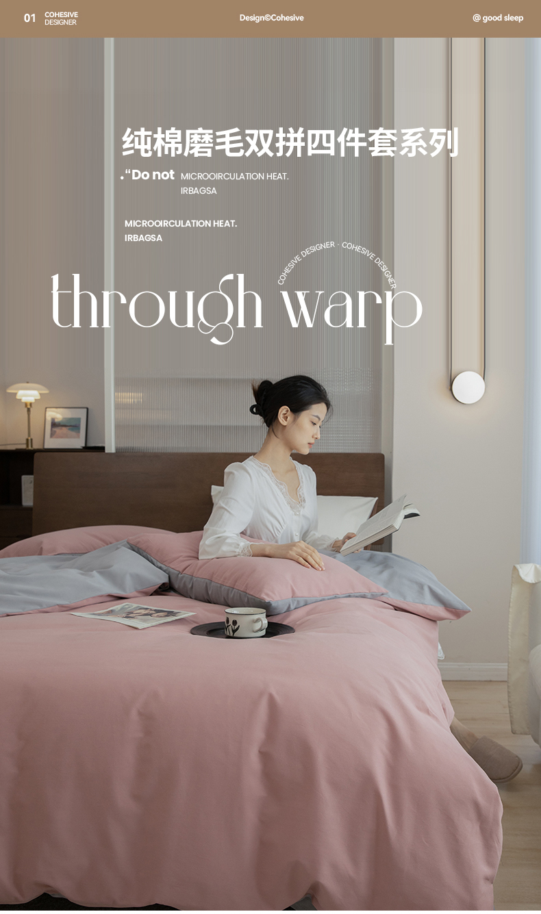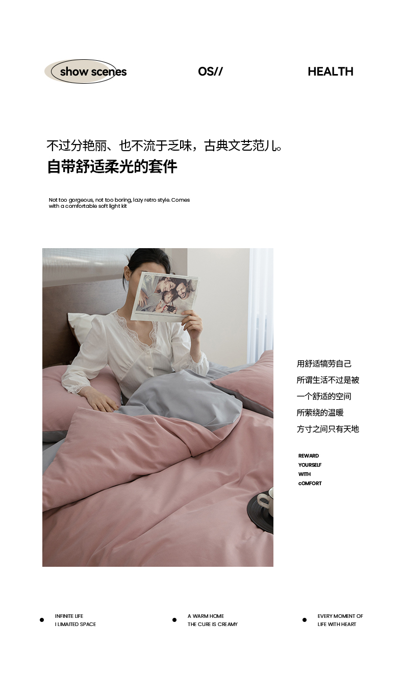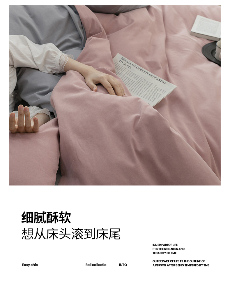 当前位置: 91家纺网 > 商品网购 > 床品套件 > 四件套 > 普通磨毛四件套 > 寐眠 2023新款纯棉磨毛双拼四件套 爱丽丝粉灰