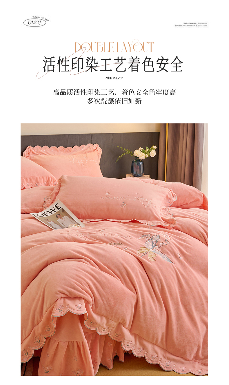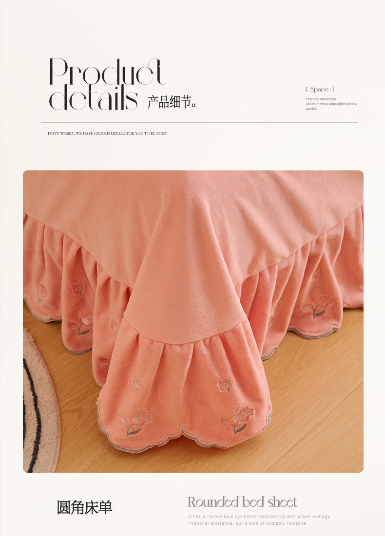 (总)恒爱 2022秋冬水晶绒翩翩花舞夹棉床裙四件套,大红色,豆沙红,橄榄绿,公主粉,桔色,咖啡色,孔雀绿,拉菲红,罗兰紫,玫红色,美人玉,米白色,米驼色,抹茶绿,浅灰色,紫色