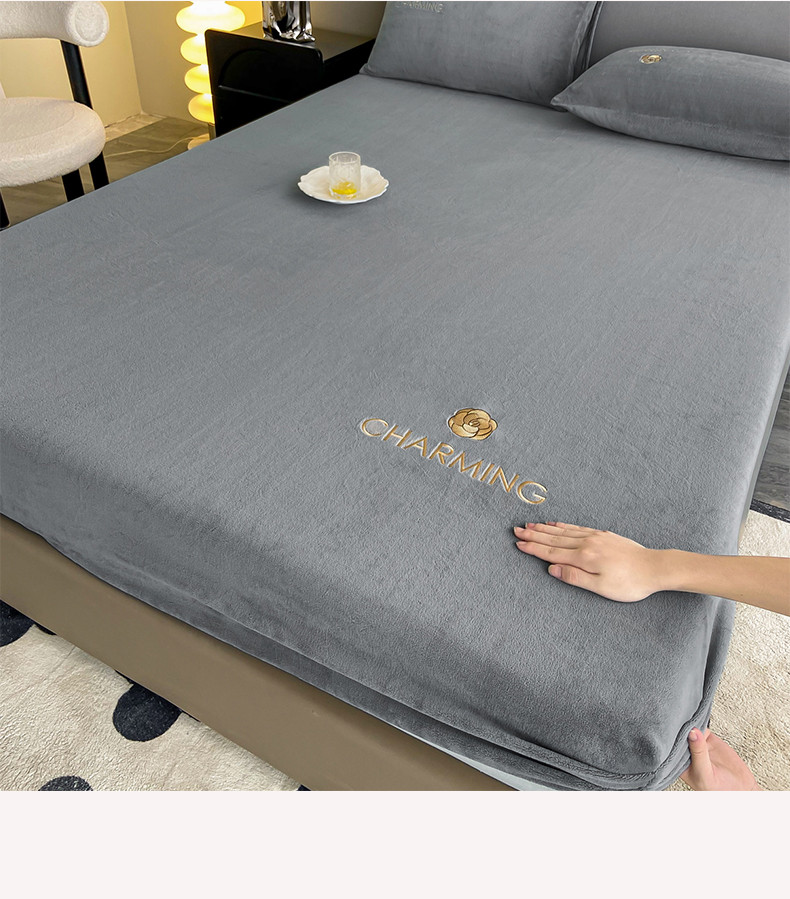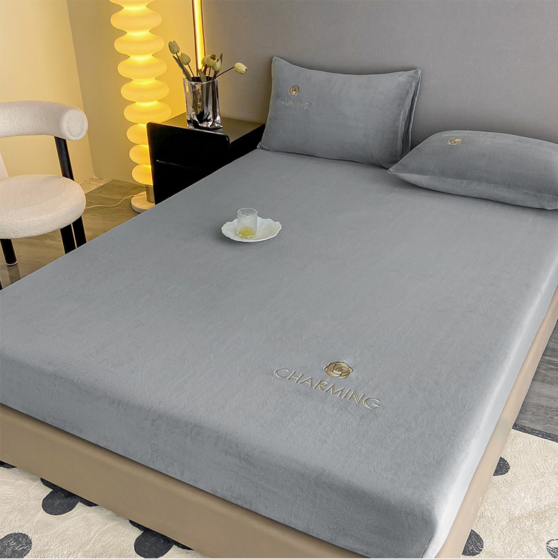 古吉梦 2023新款牛奶绒刺绣床笠-琳达 琳达-经典灰