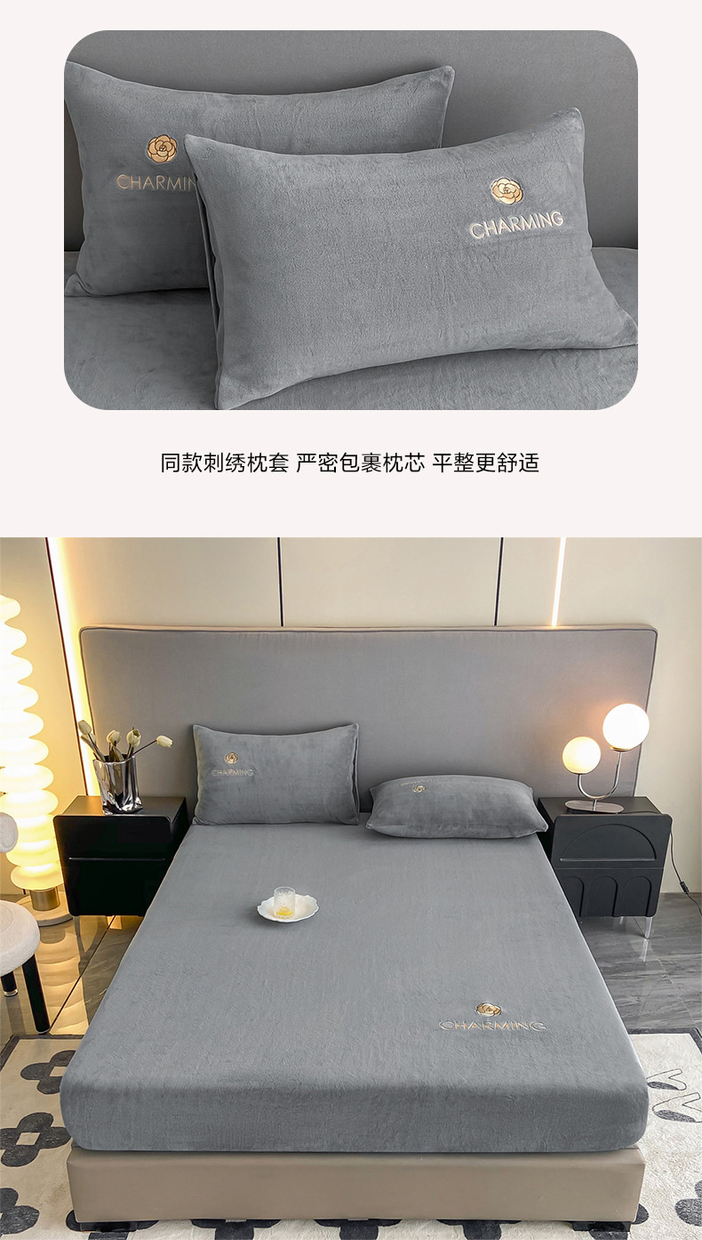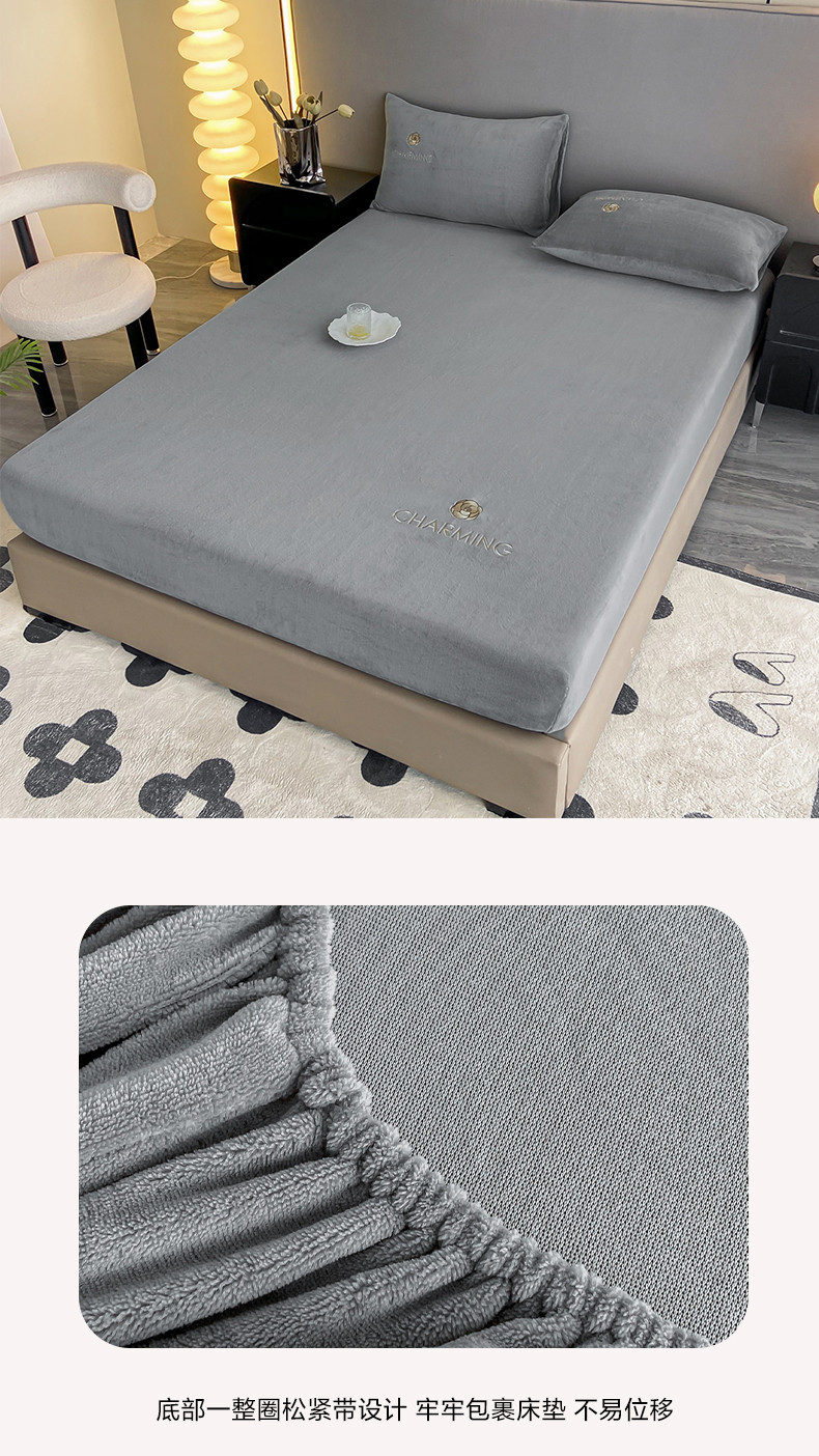 • 91家纺网 家纺一手货源 找家纺 古吉梦 2023新款牛奶绒刺绣床笠-琳达 琳达-经典灰