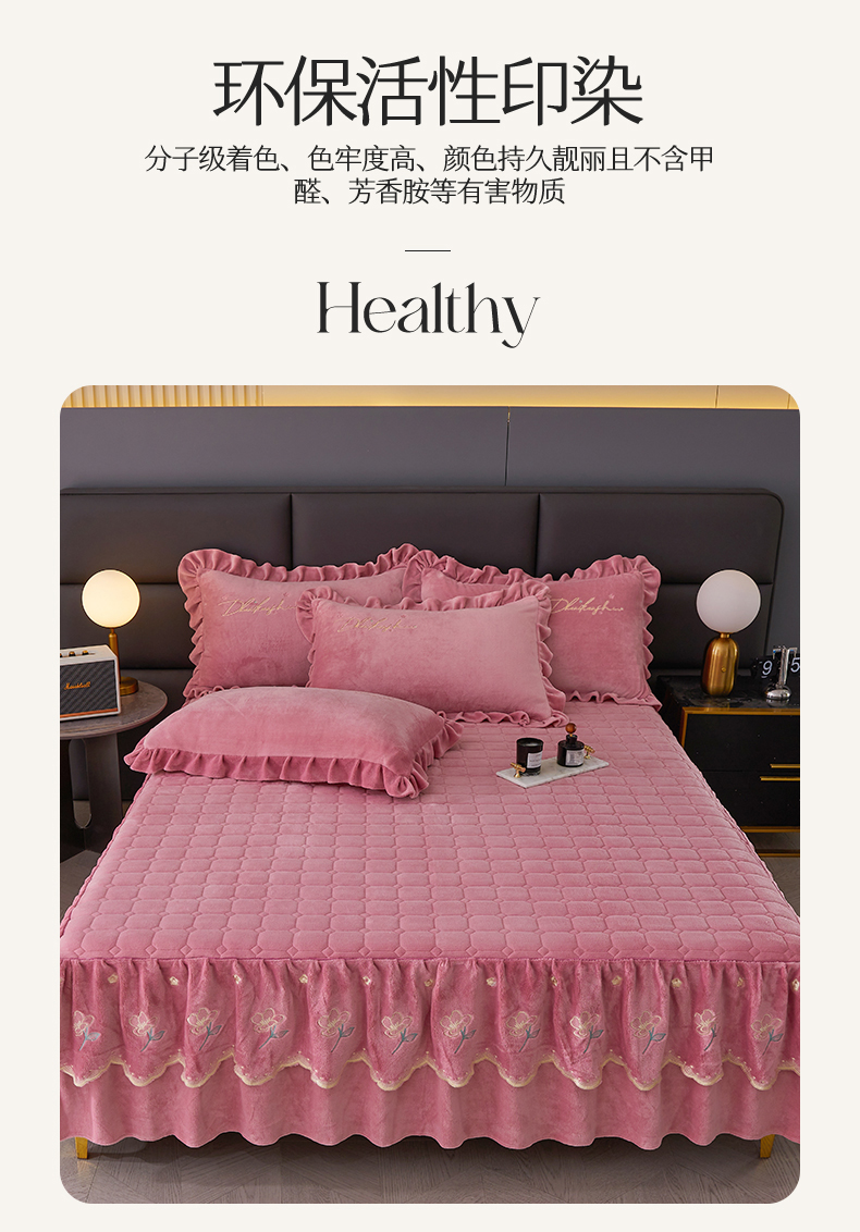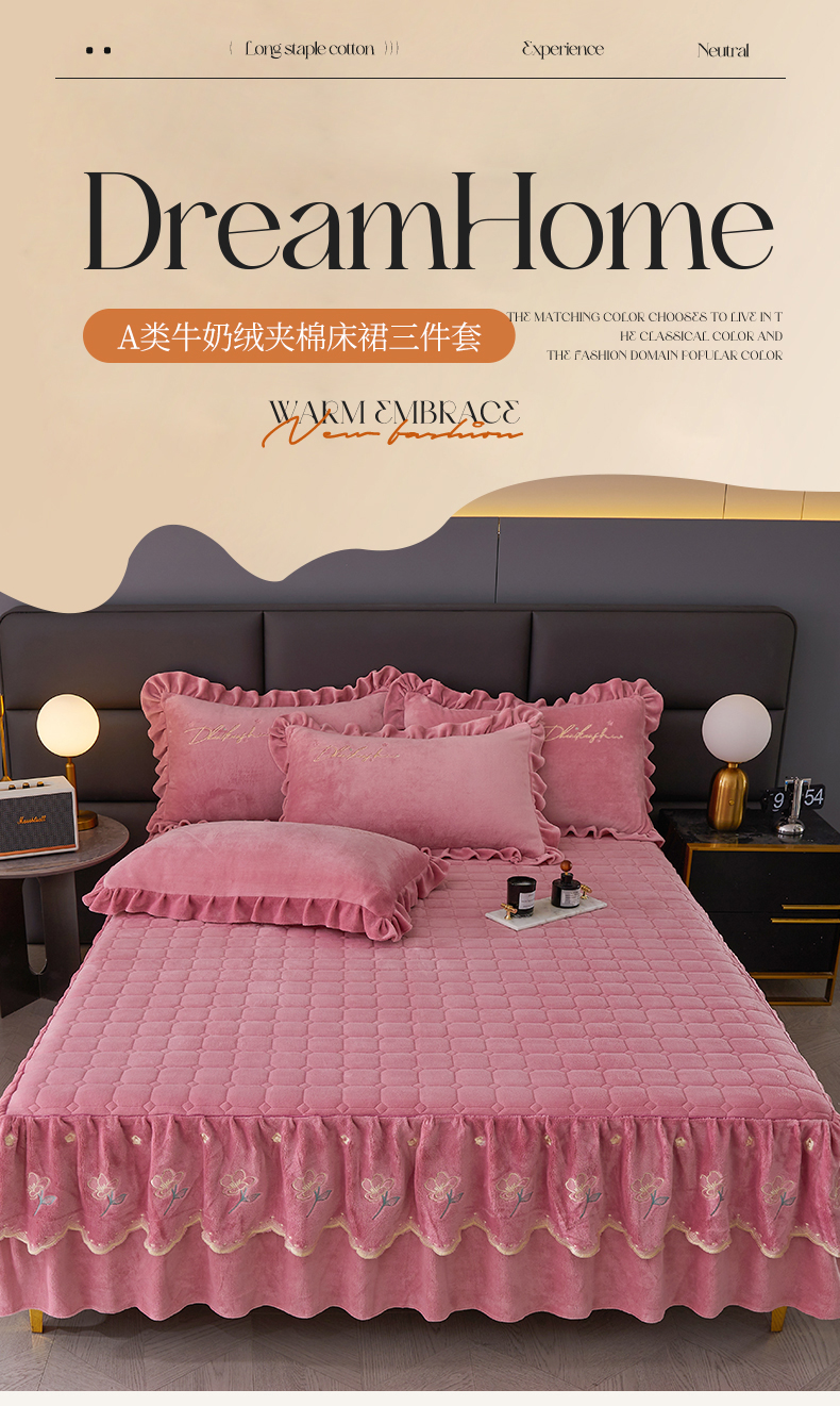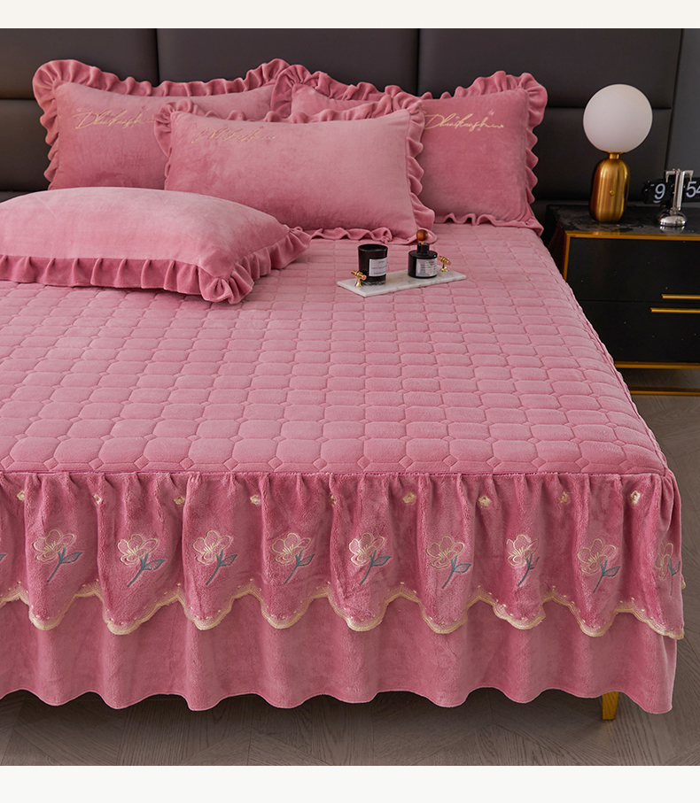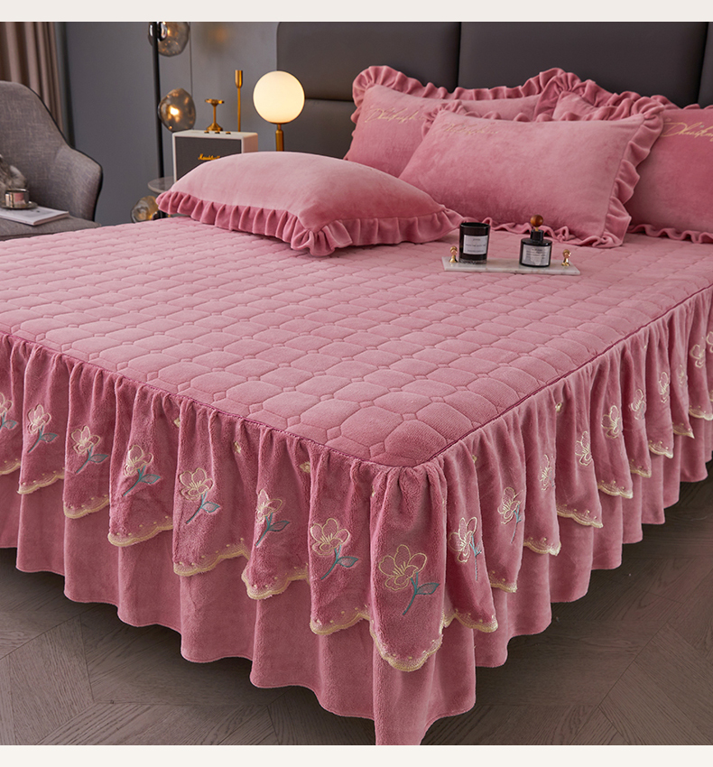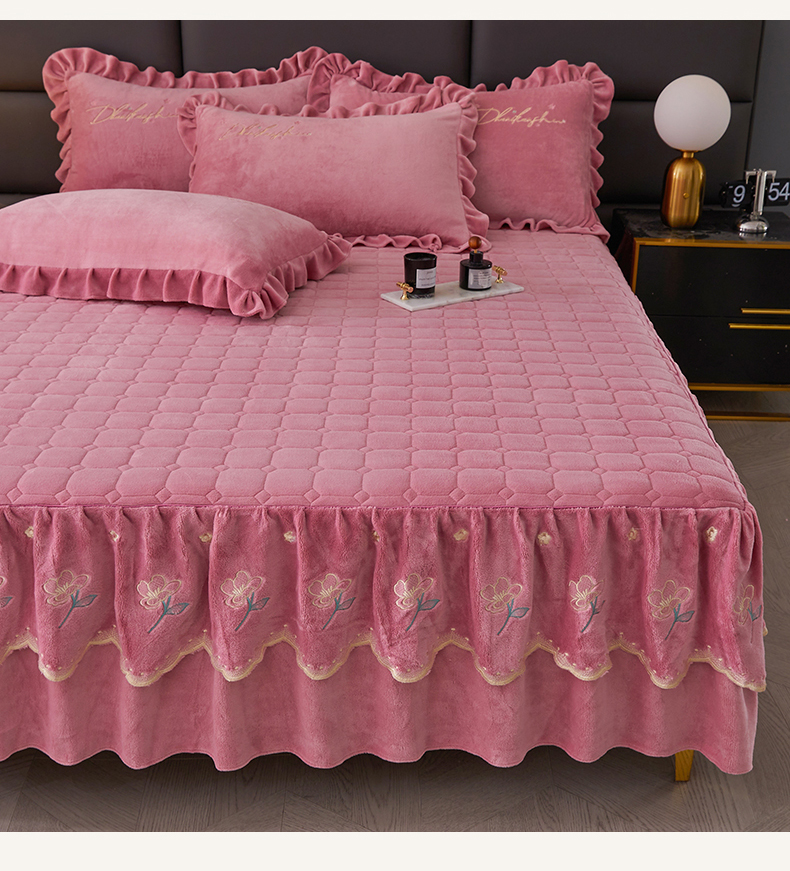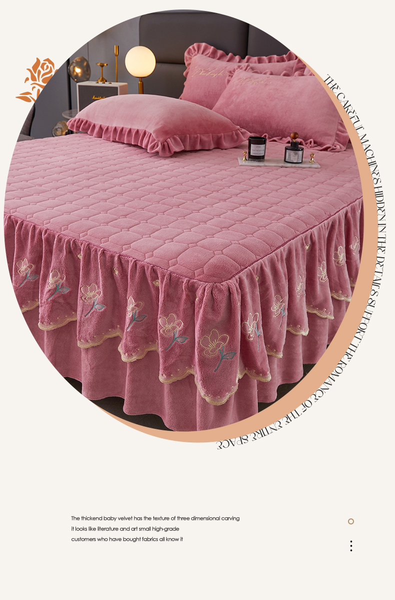 当前位置: 91家纺网 > 商品网购 > 床品套件 > 三件套 > 恒爱家纺 2023新款牡丹花开床裙牛奶绒三件套 豆沙