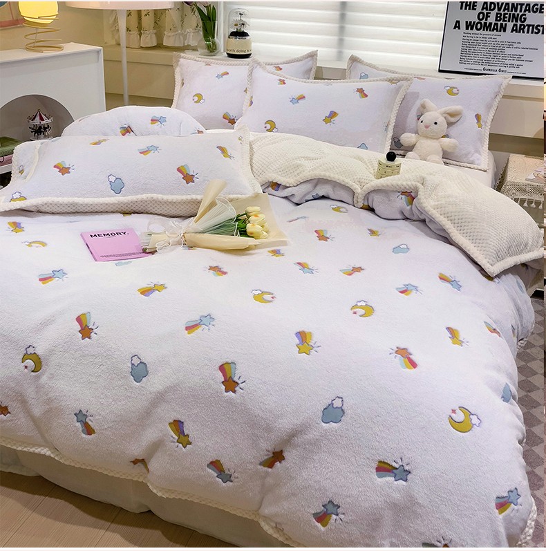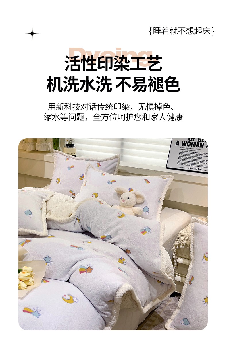 当前位置: 91家纺网 > 商品网购 > 床品套件 > 四件套 > 牛奶绒四件套 > 锦威郎 2023新款云朵绒保暖牛奶绒毛毯绒单被套加绒加厚法莱绒四件套 彩虹白