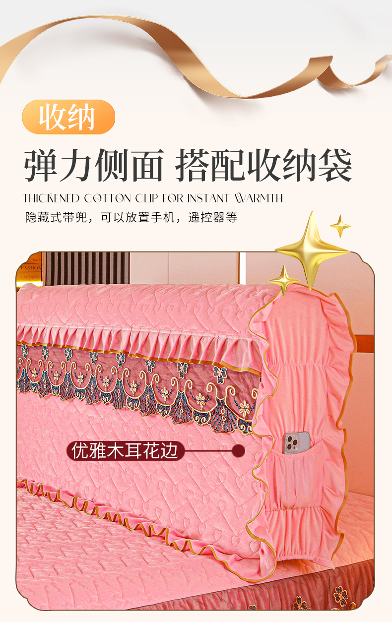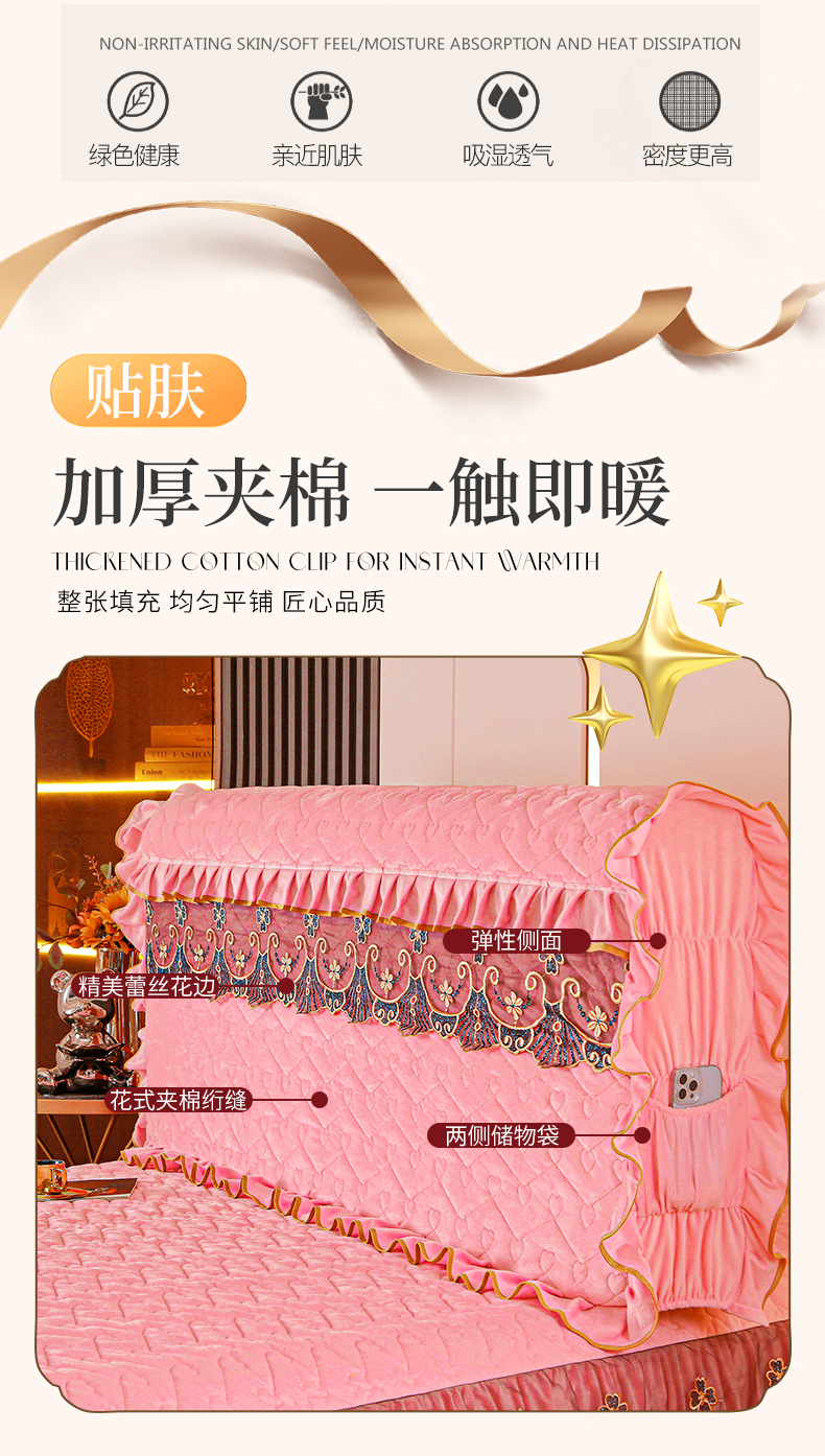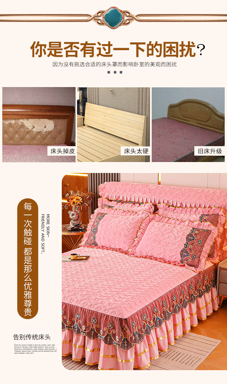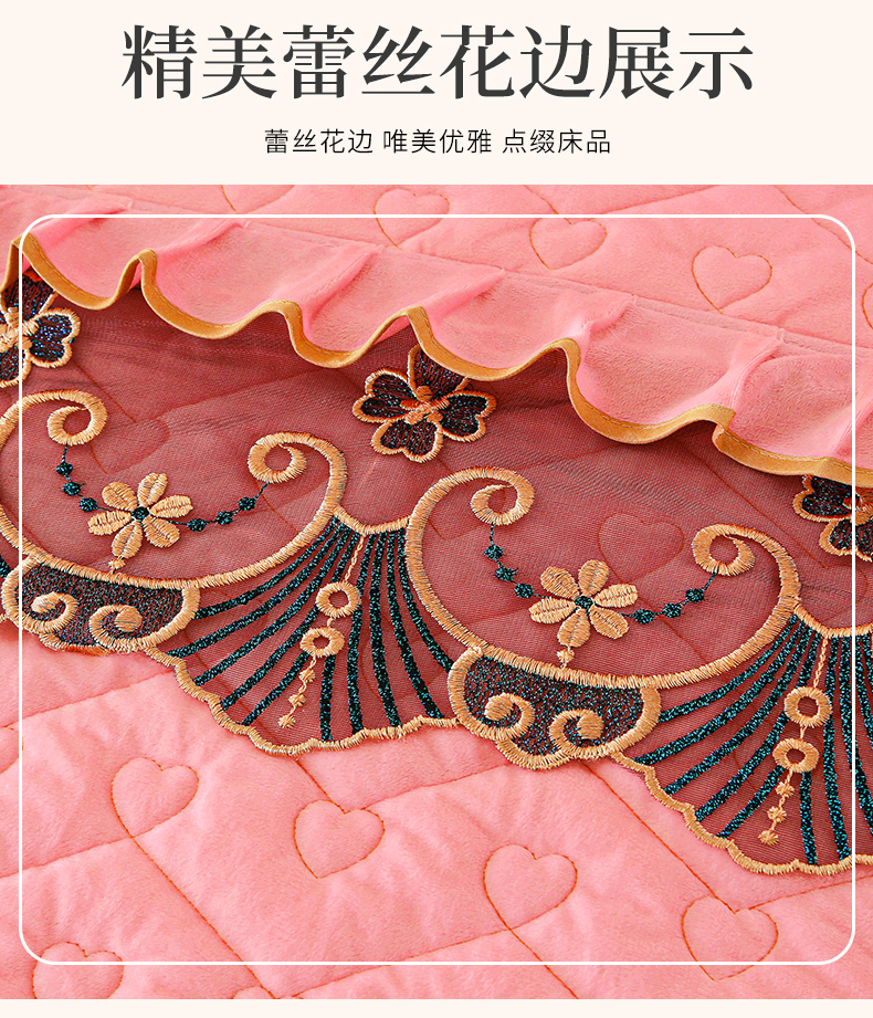 (总)屹成家纺2025新款水晶绒夹棉绗缝蕾丝床裙三件套(塞纳河畔)床裙单件起售价不低于105元,大红,豆沙,翡翠绿,粉玉,橄榄绿,蔚蓝,银灰
